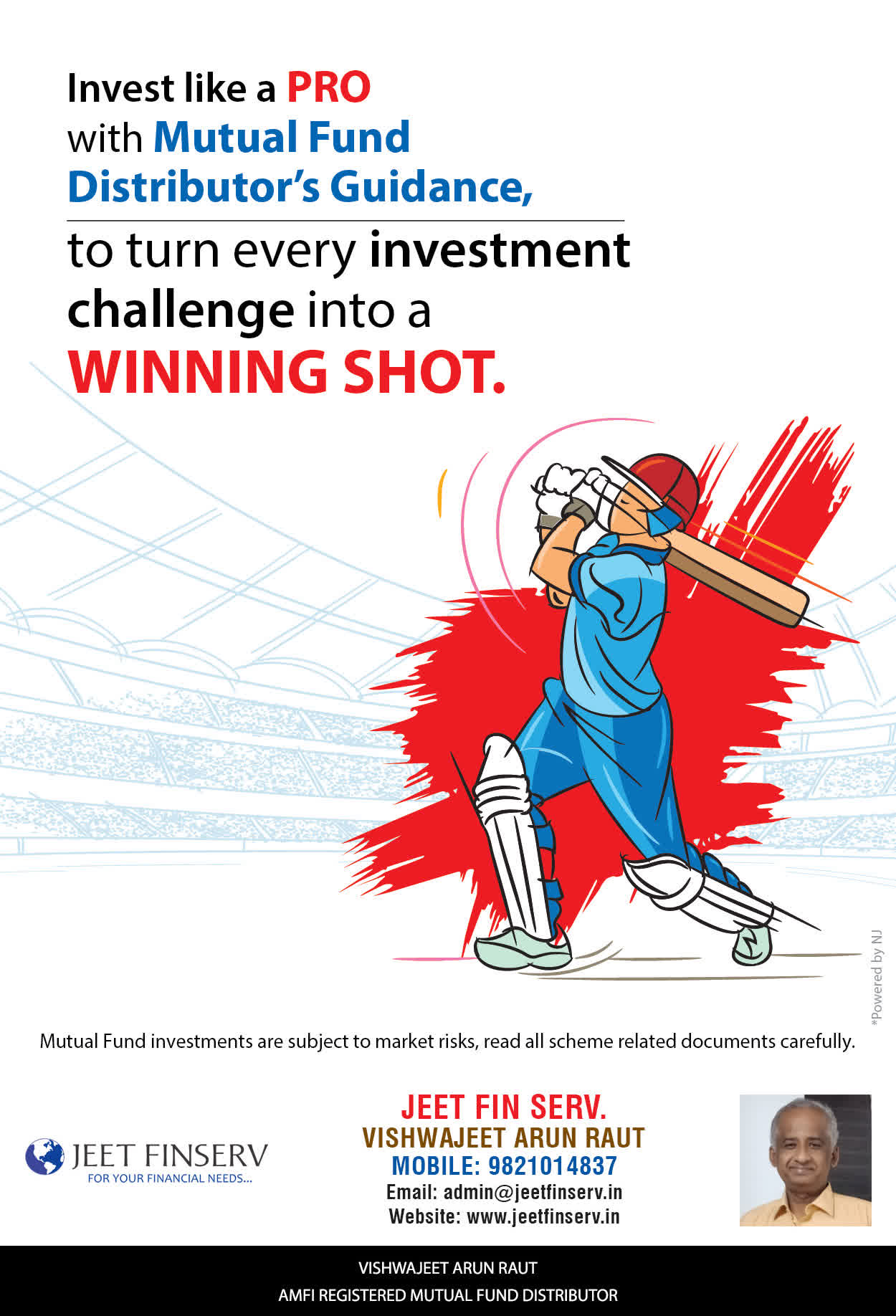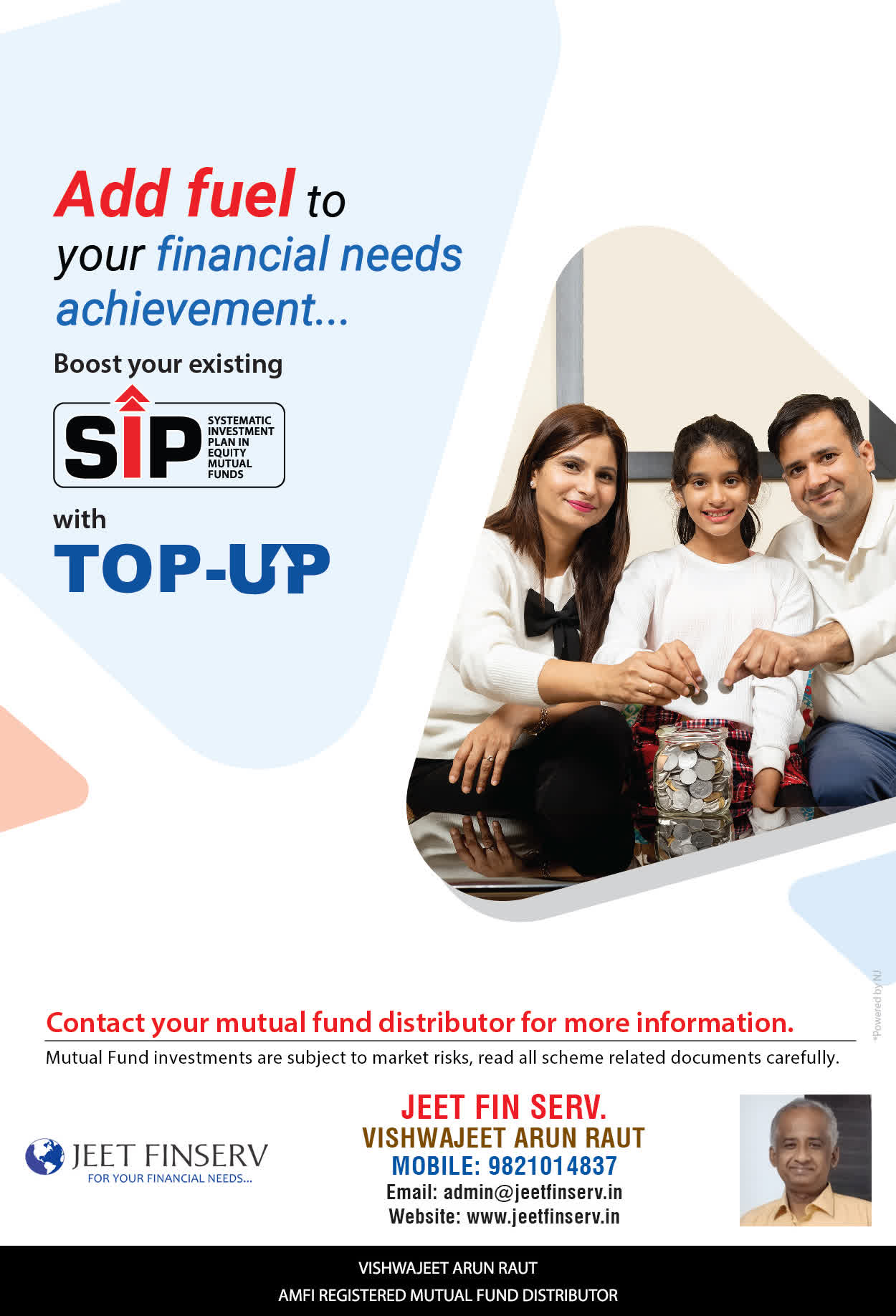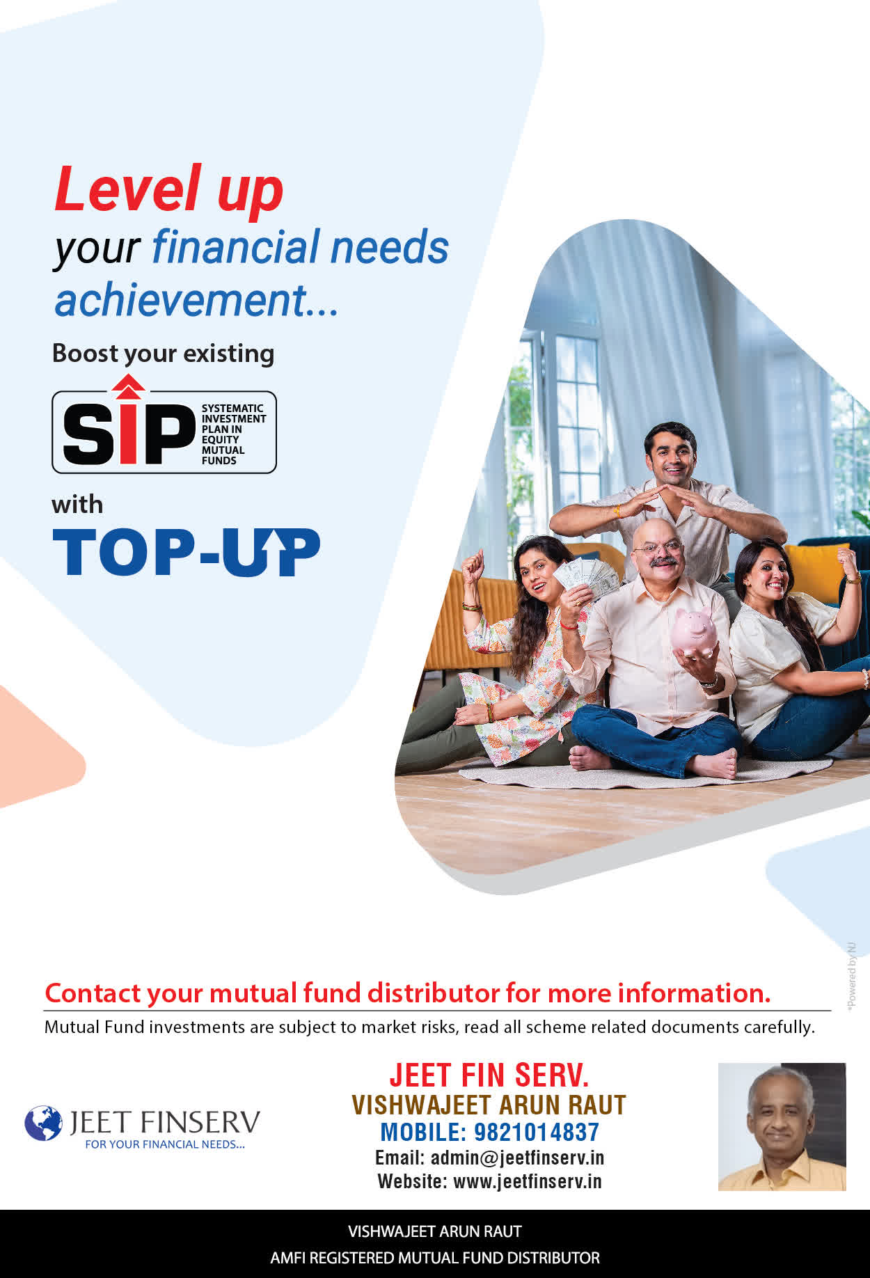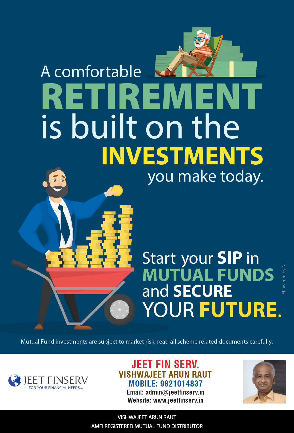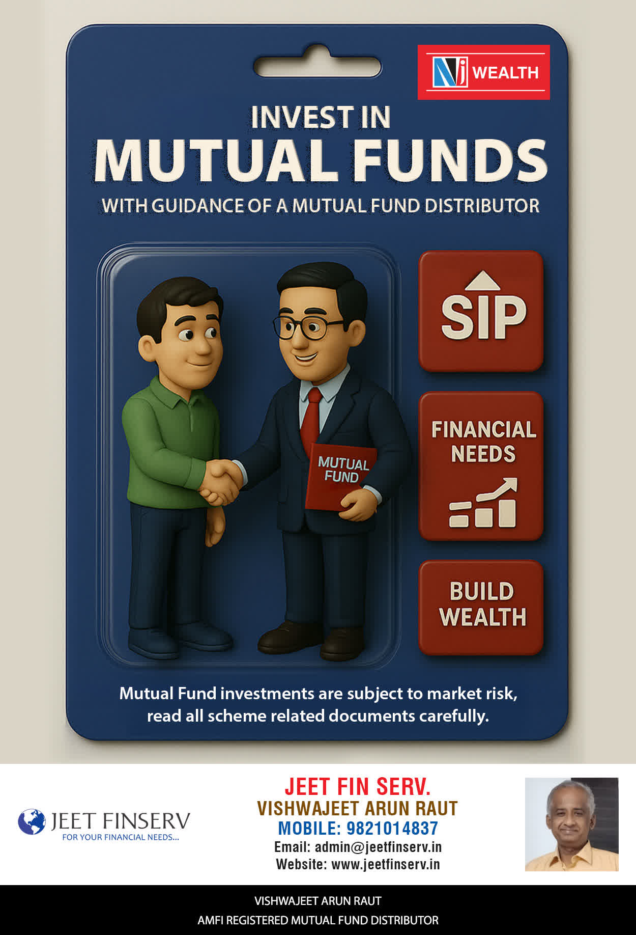 At JEET FIN SERV, our vision is to provide you with the most ideal solutions in wealth management for your overall financial well-being. It is our mission to reach to a maximum number of clients and make a positive, worthwhile impact in their lives and help them realize and achieve their responsibilities and financial goals in life.