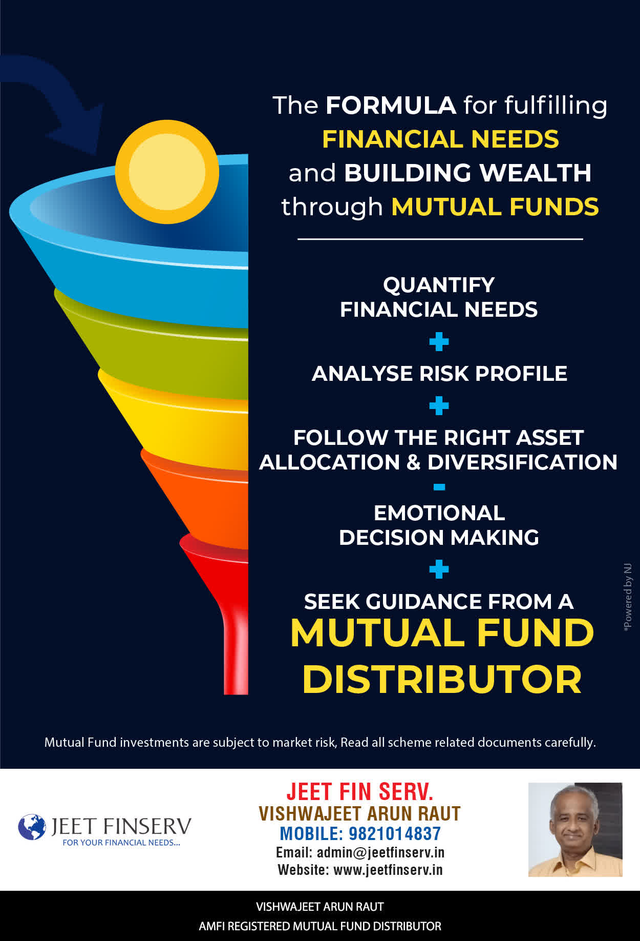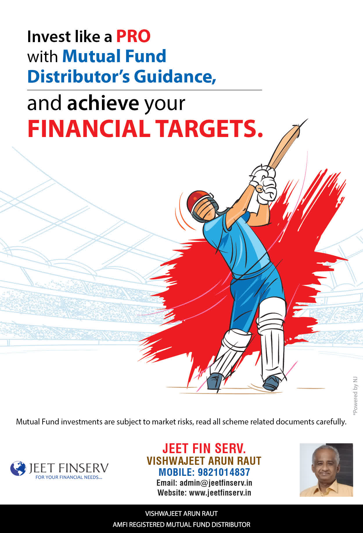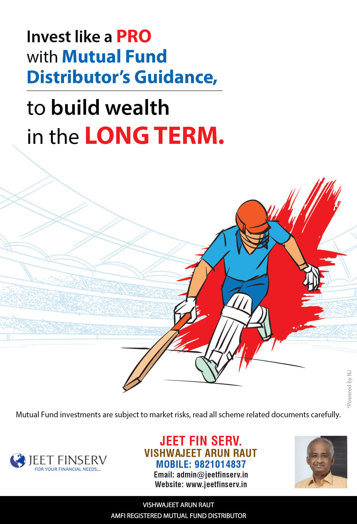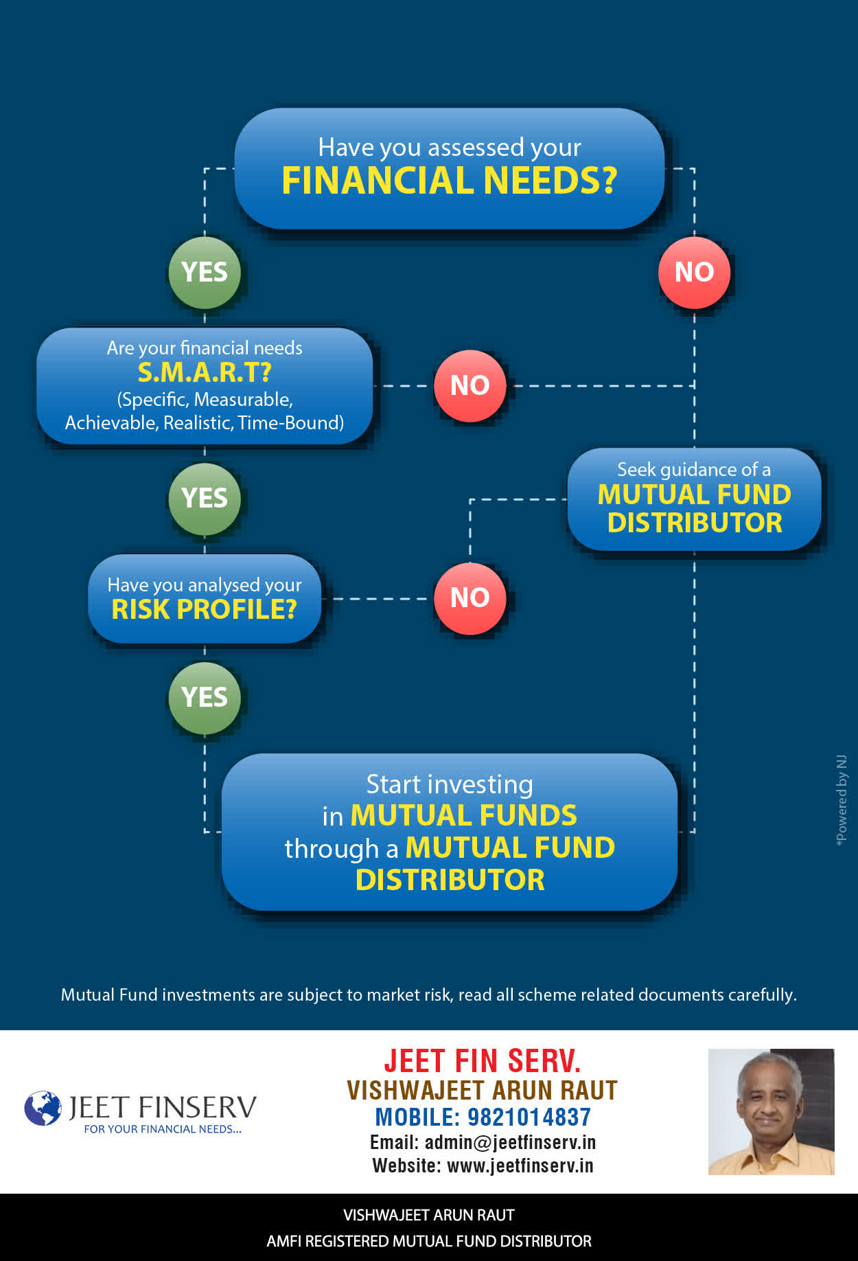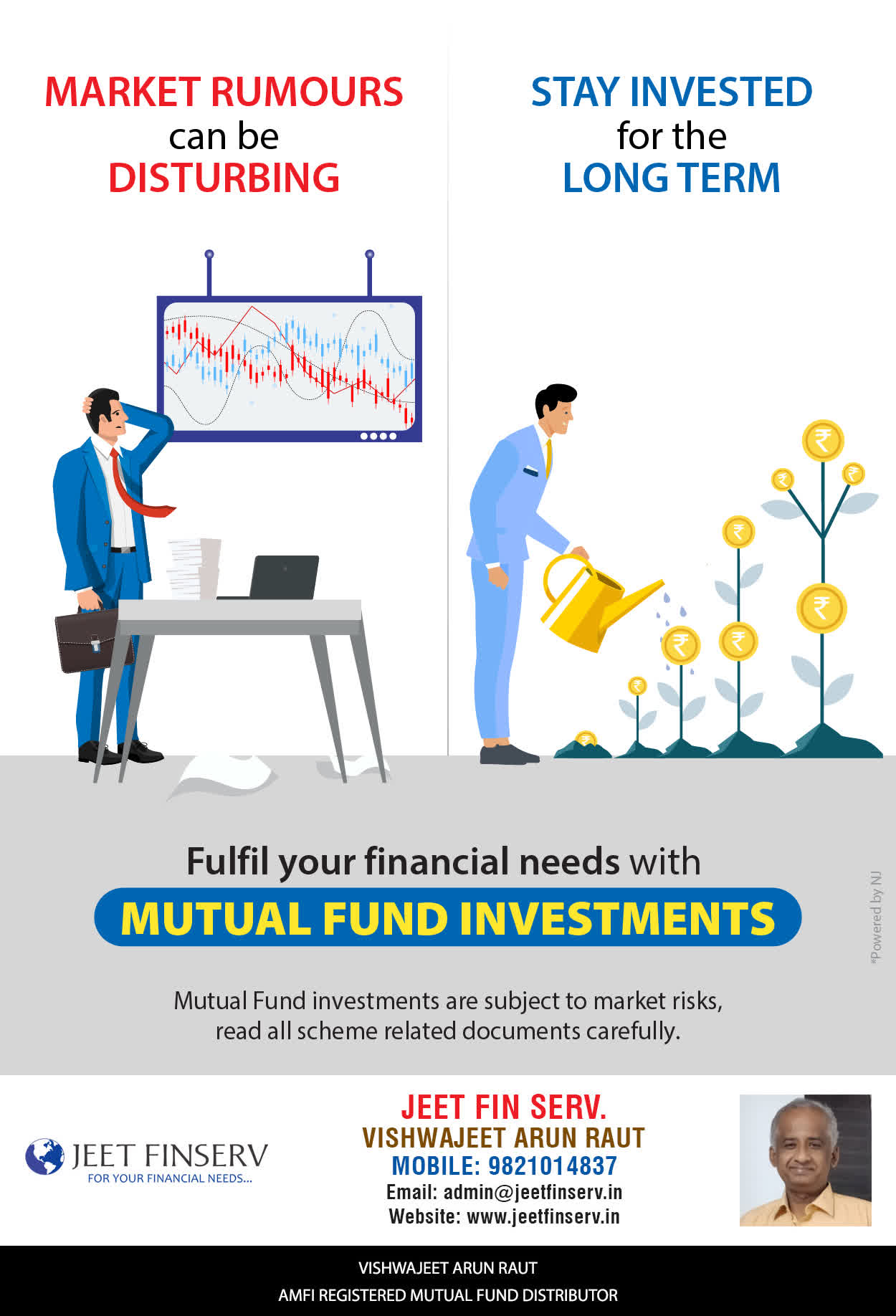 At JEET FIN SERV, our vision is to provide you with the most ideal solutions in wealth management for your overall financial well-being. It is our mission to reach to a maximum number of clients and make a positive, worthwhile impact in their lives and help them realize and achieve their responsibilities and financial goals in life.