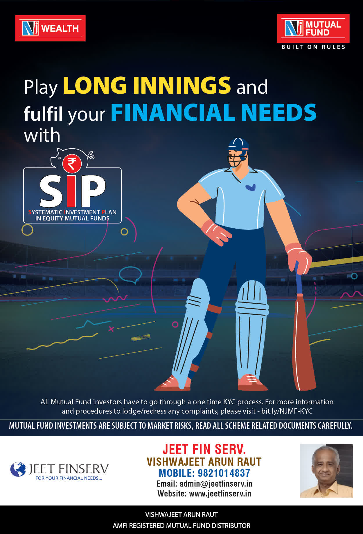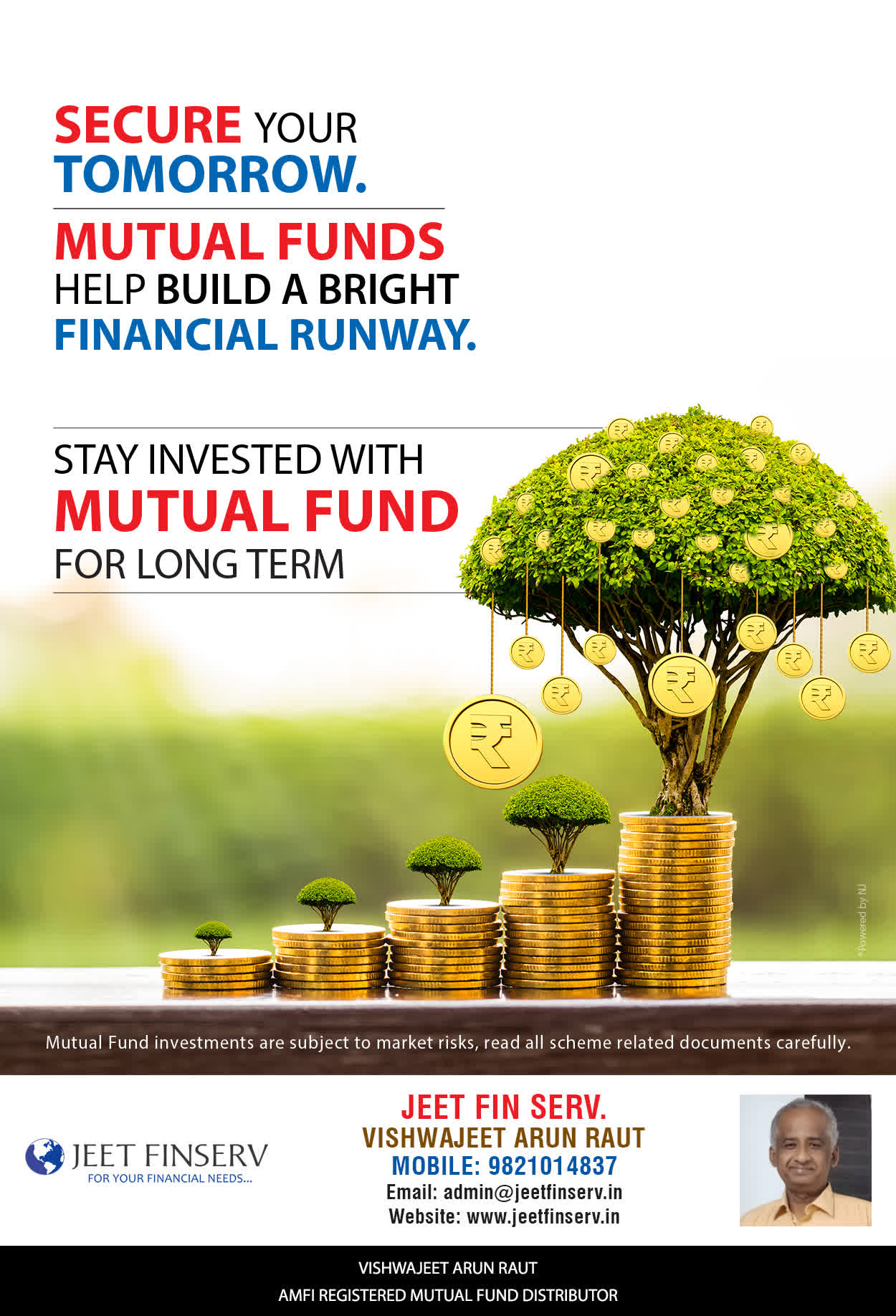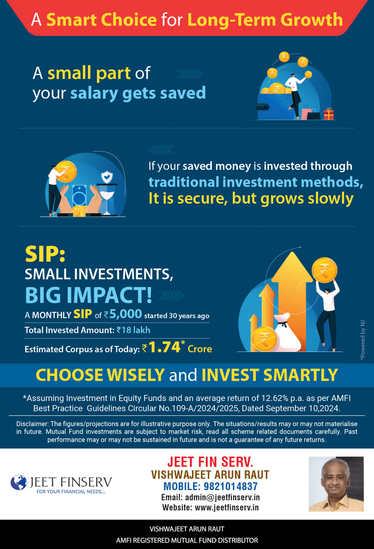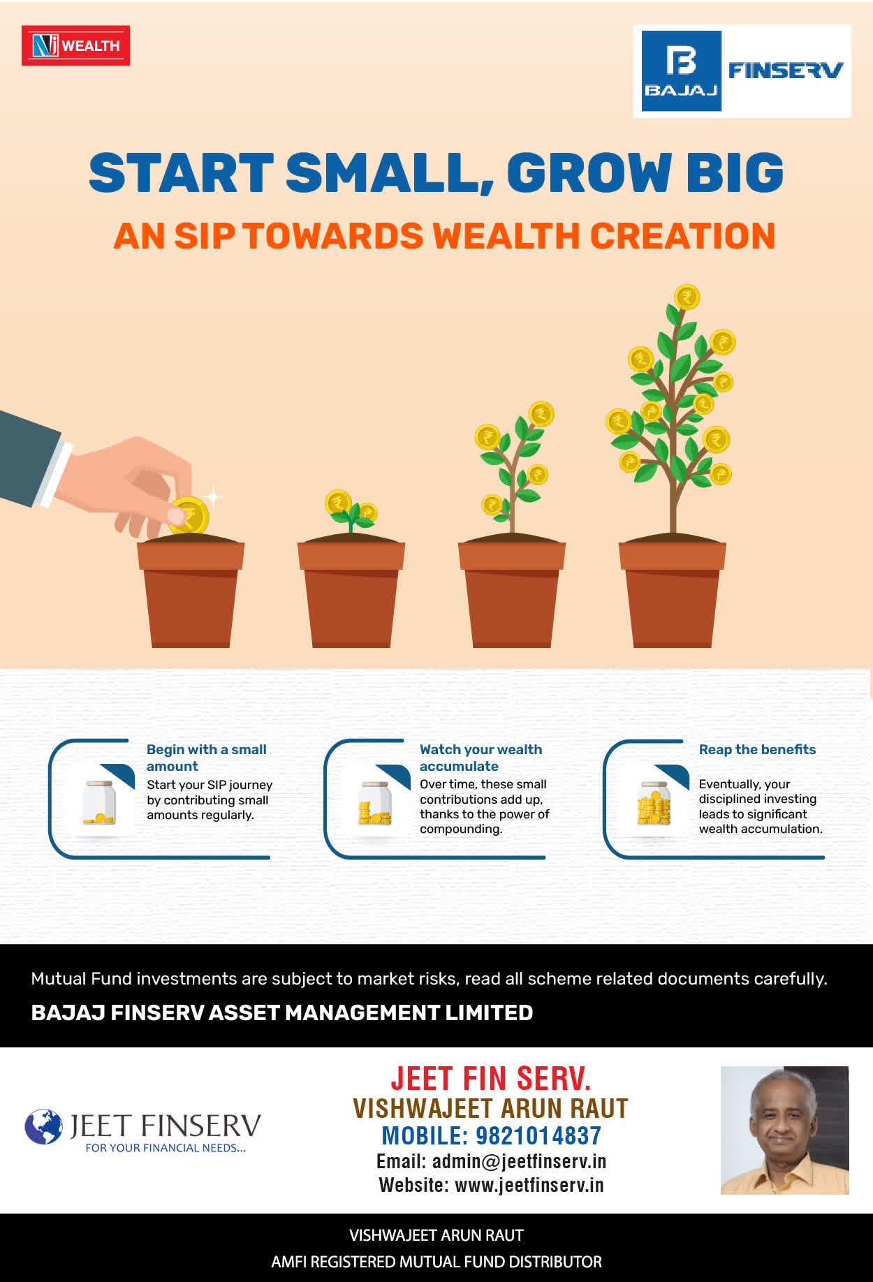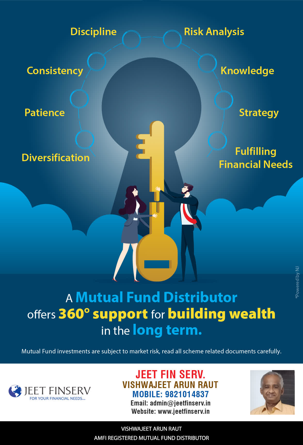 At JEET FIN SERV, our vision is to provide you with the most ideal solutions in wealth management for your overall financial well-being. It is our mission to reach to a maximum number of clients and make a positive, worthwhile impact in their lives and help them realize and achieve their responsibilities and financial goals in life.