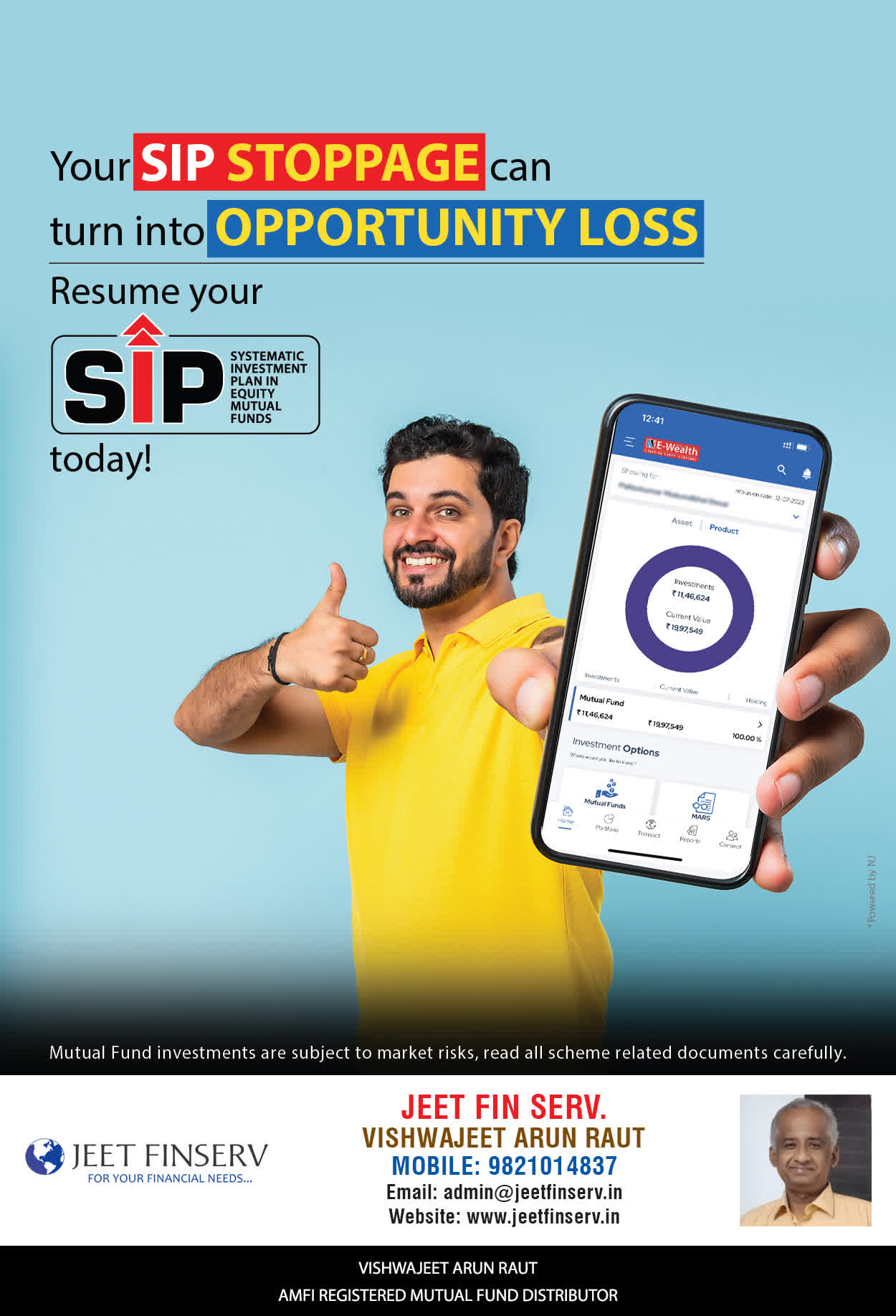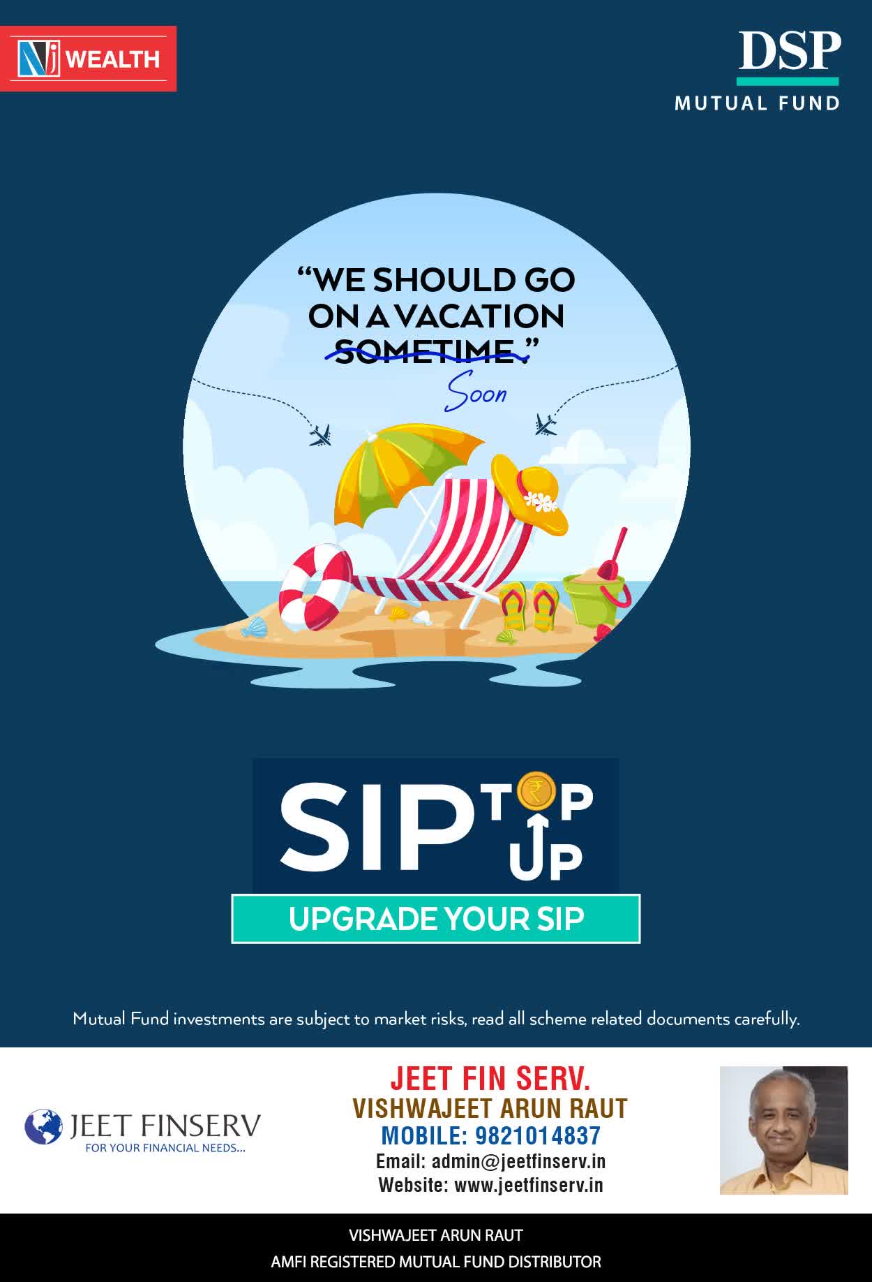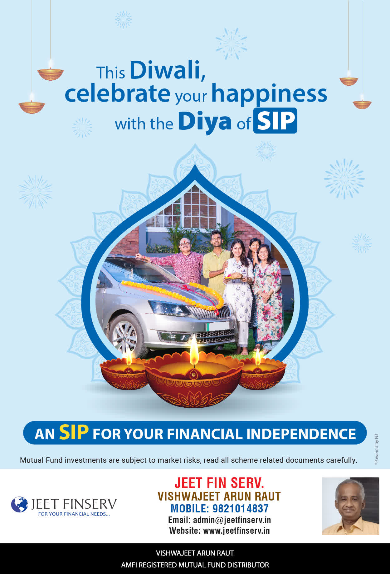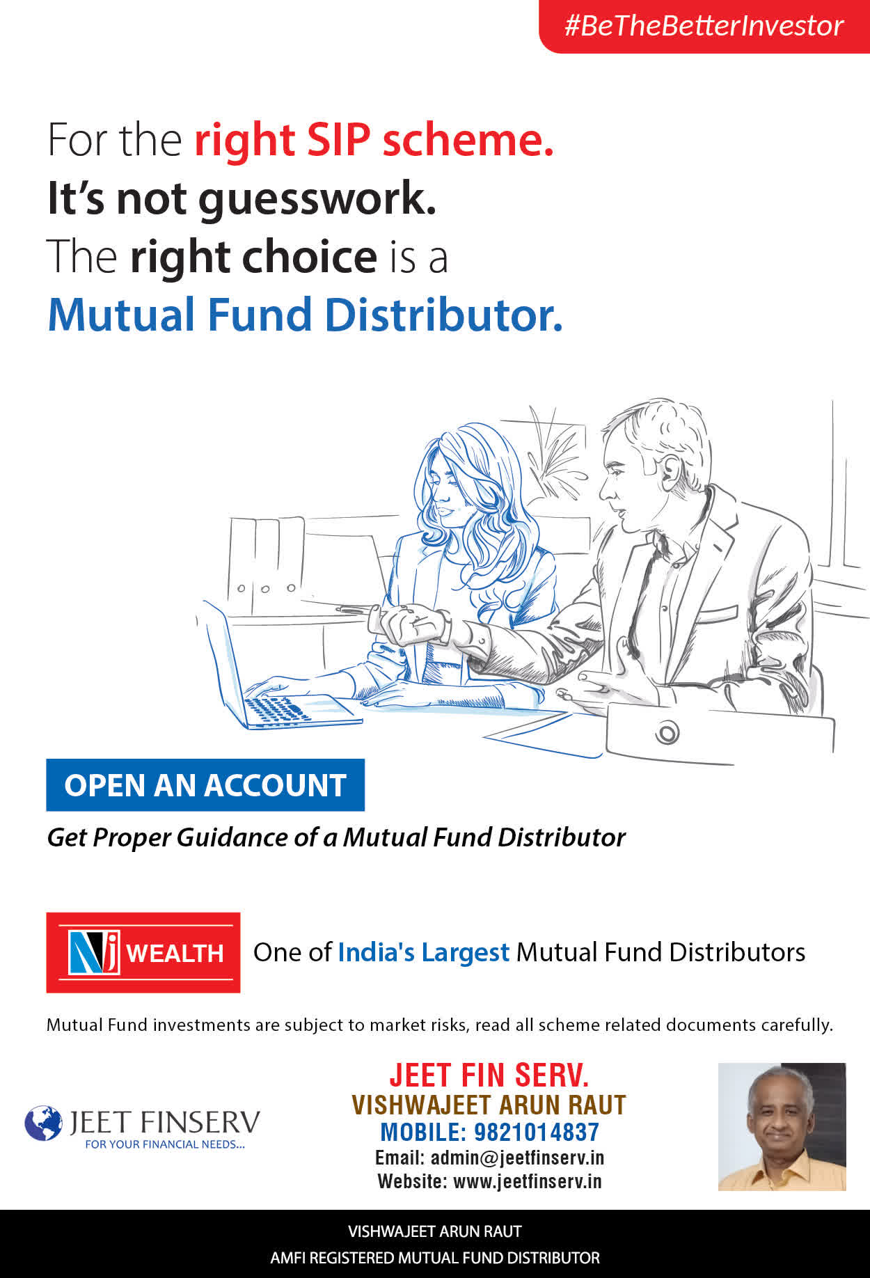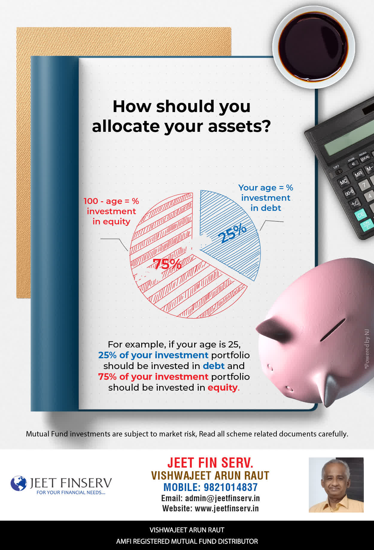 At JEET FIN SERV, our vision is to provide you with the most ideal solutions in wealth management for your overall financial well-being. It is our mission to reach to a maximum number of clients and make a positive, worthwhile impact in their lives and help them realize and achieve their responsibilities and financial goals in life.