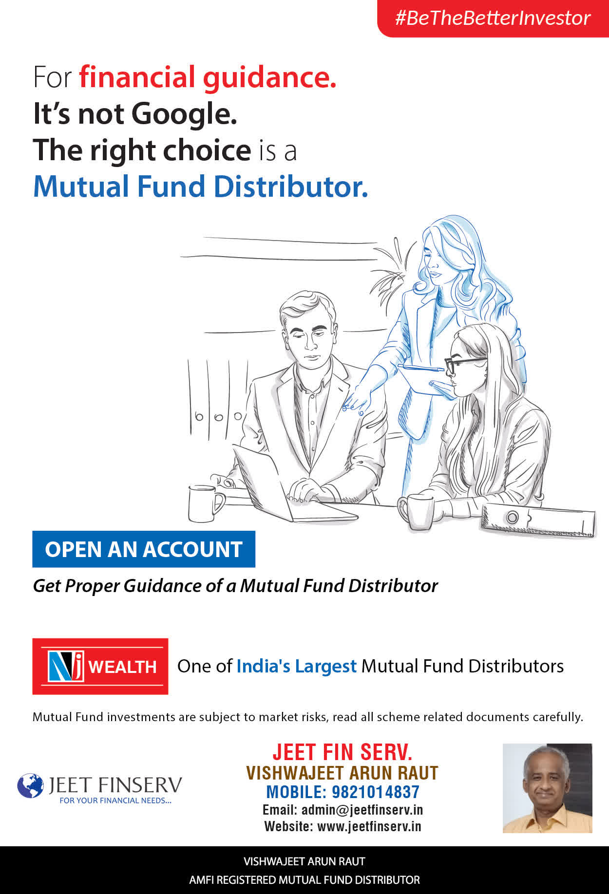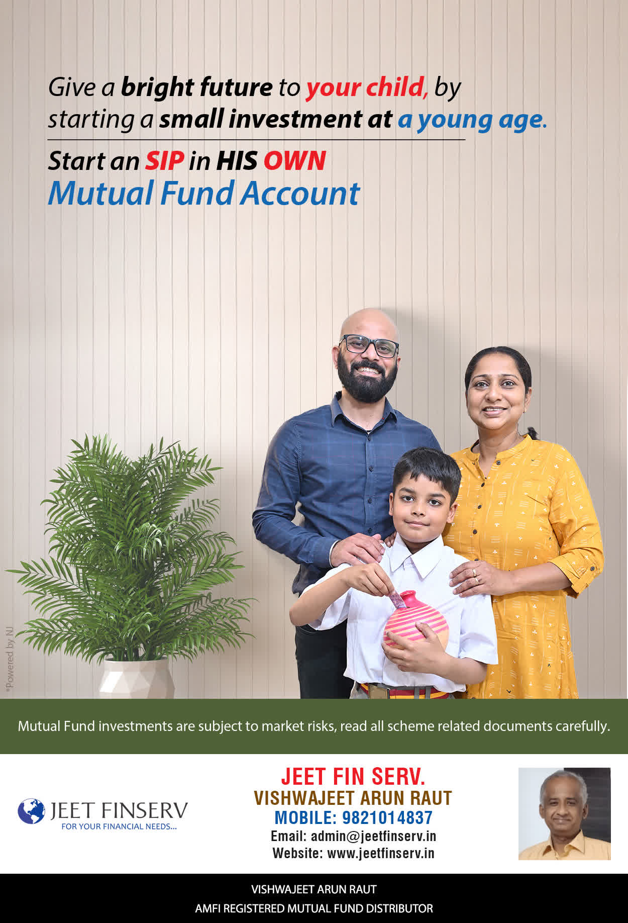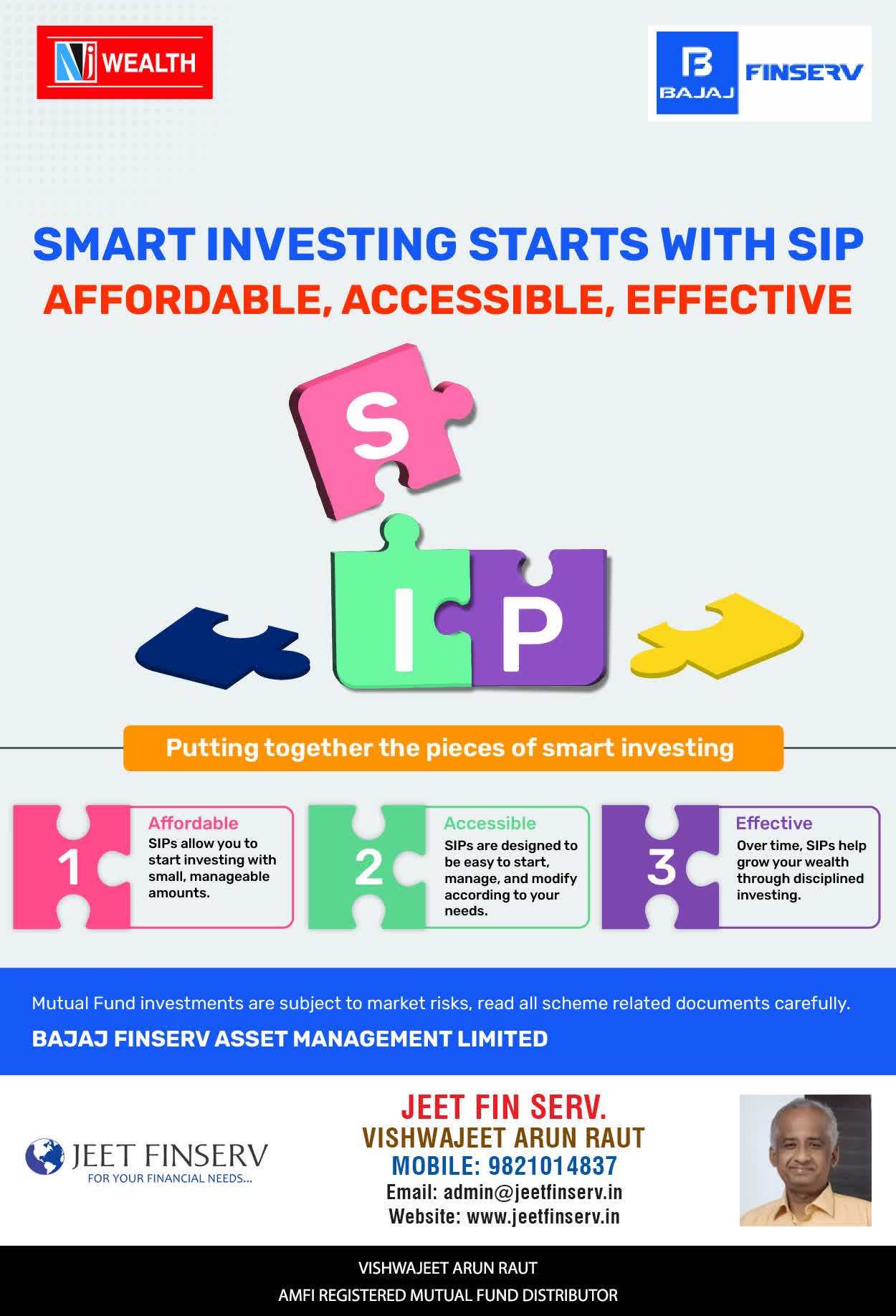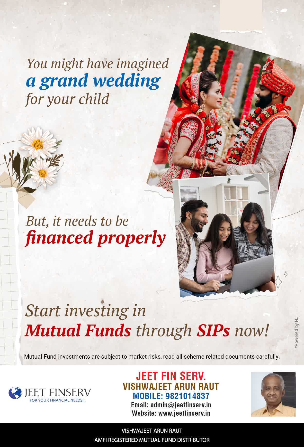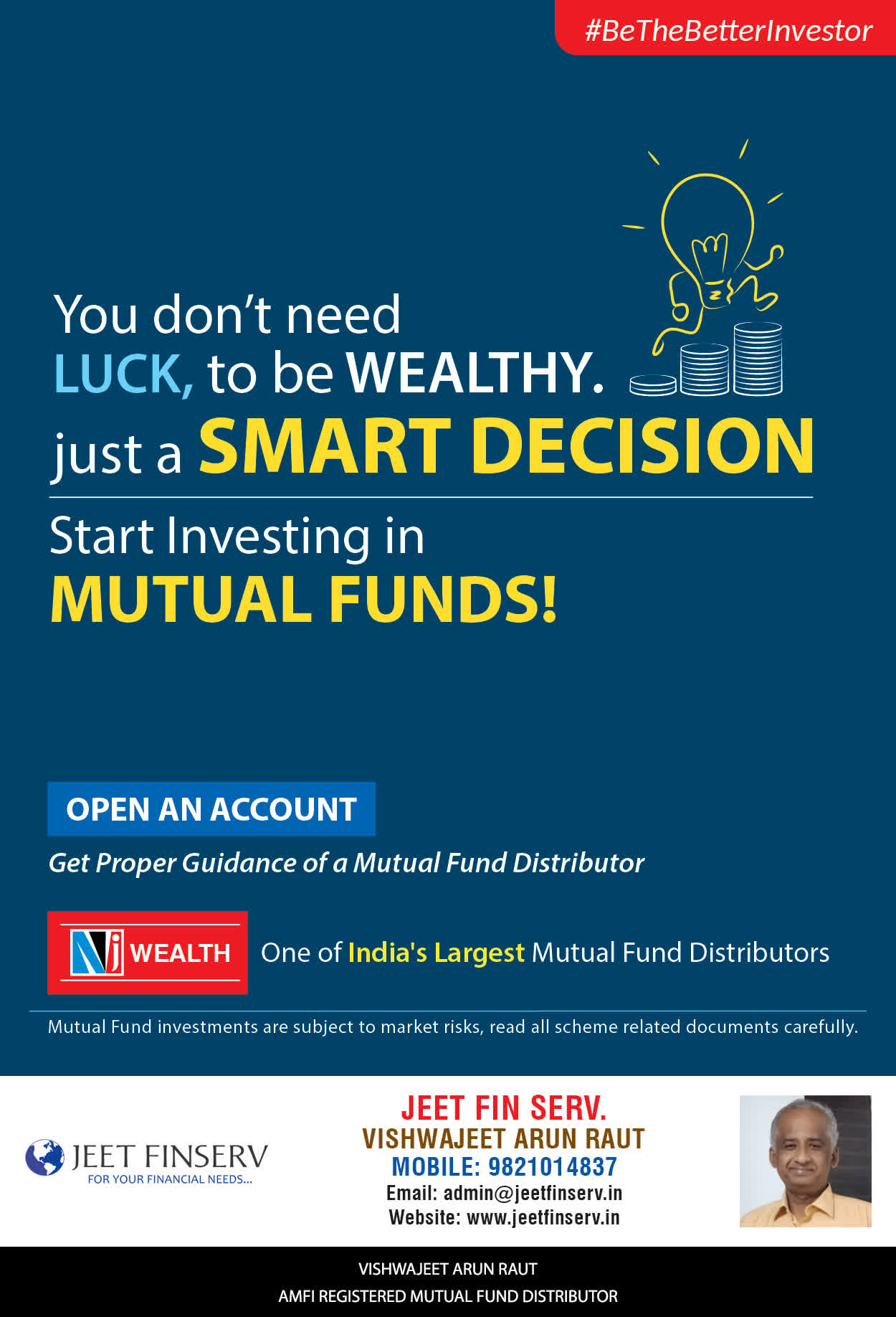 At JEET FIN SERV, our vision is to provide you with the most ideal solutions in wealth management for your overall financial well-being. It is our mission to reach to a maximum number of clients and make a positive, worthwhile impact in their lives and help them realize and achieve their responsibilities and financial goals in life.