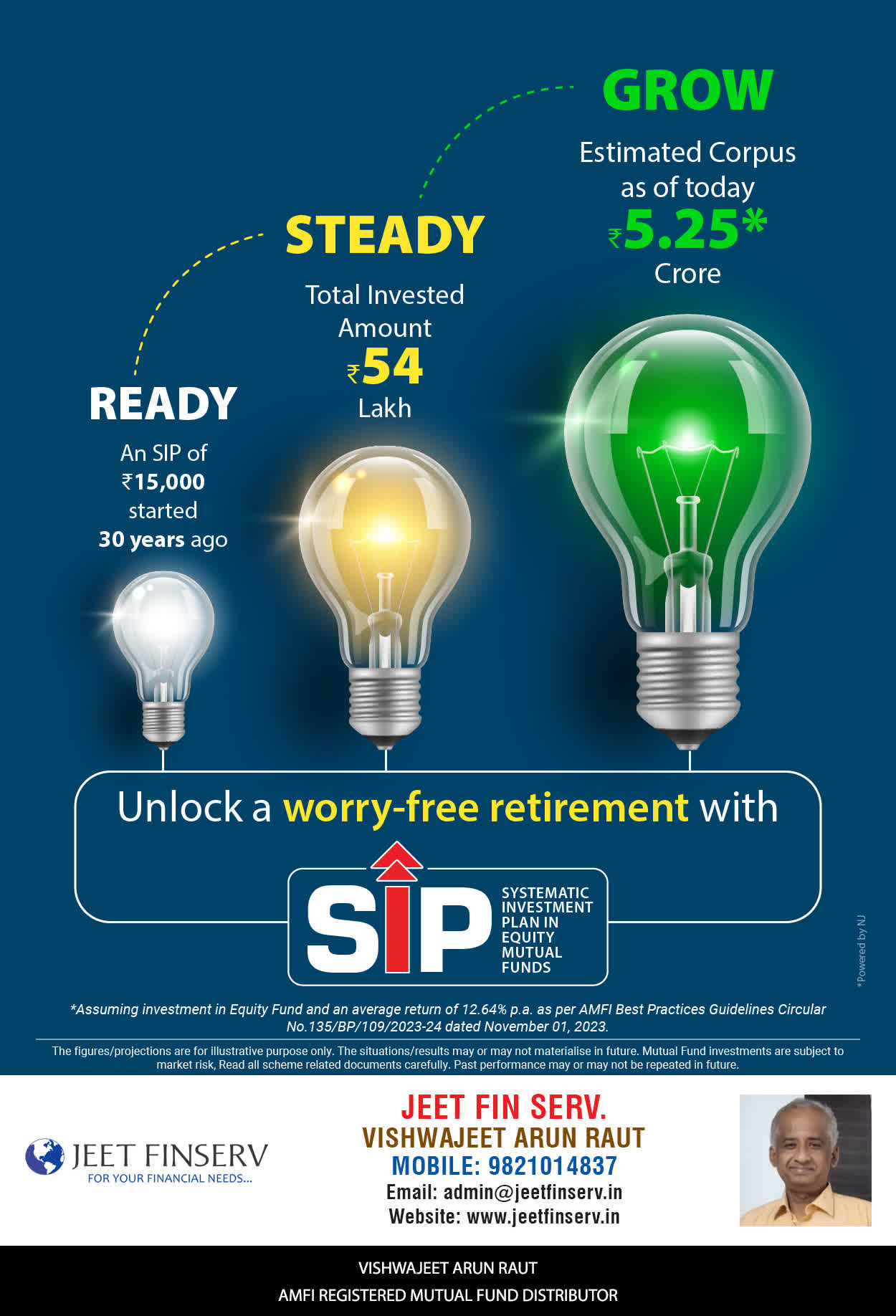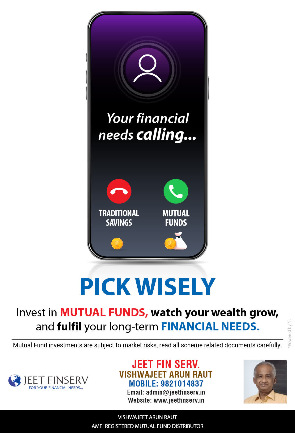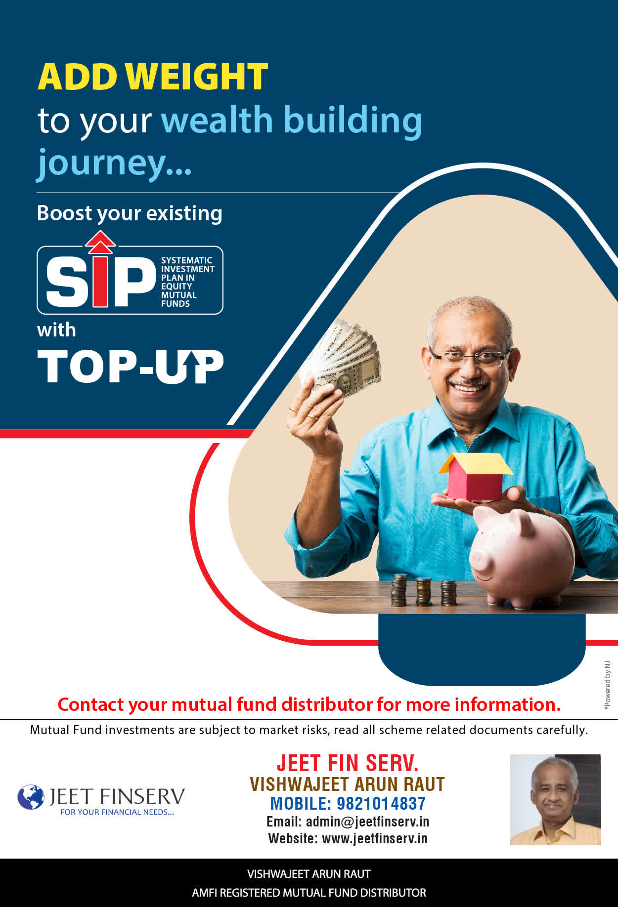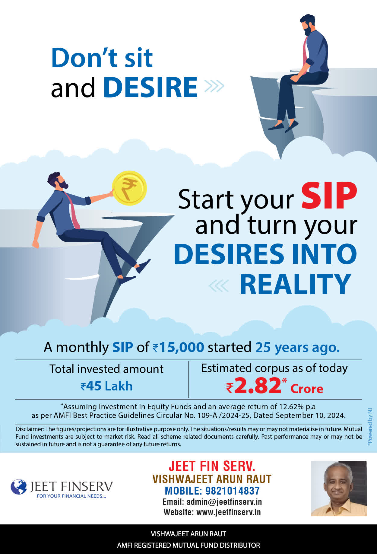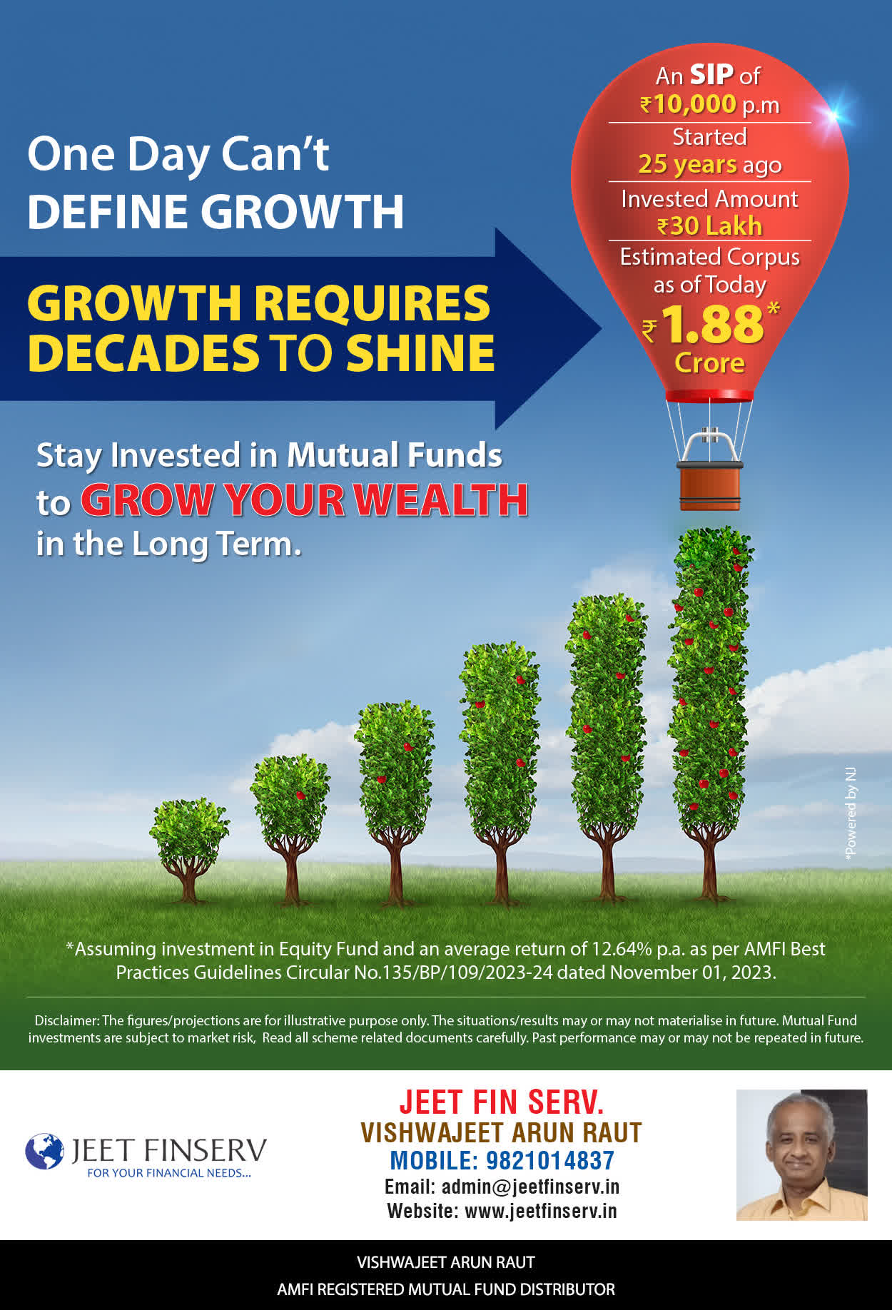 At JEET FIN SERV, our vision is to provide you with the most ideal solutions in wealth management for your overall financial well-being. It is our mission to reach to a maximum number of clients and make a positive, worthwhile impact in their lives and help them realize and achieve their responsibilities and financial goals in life.