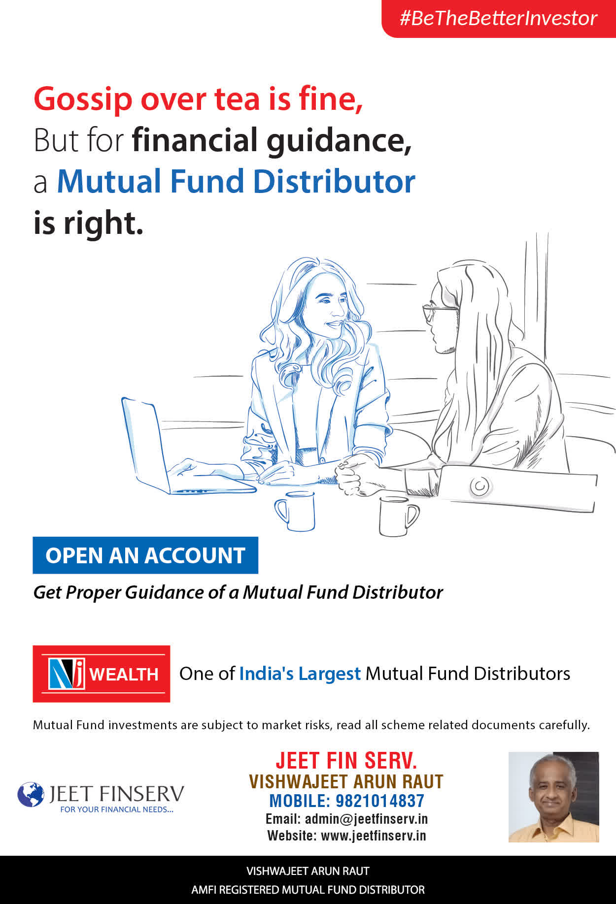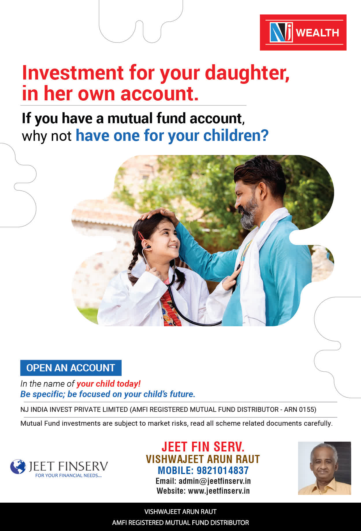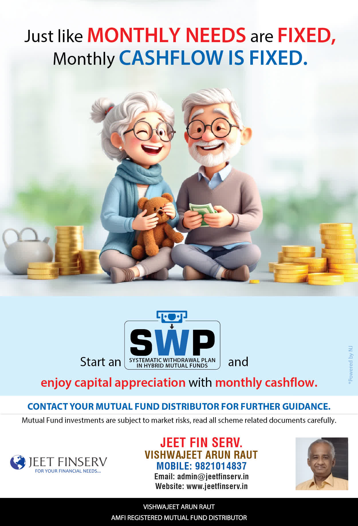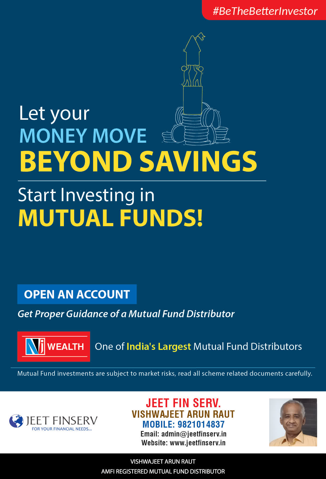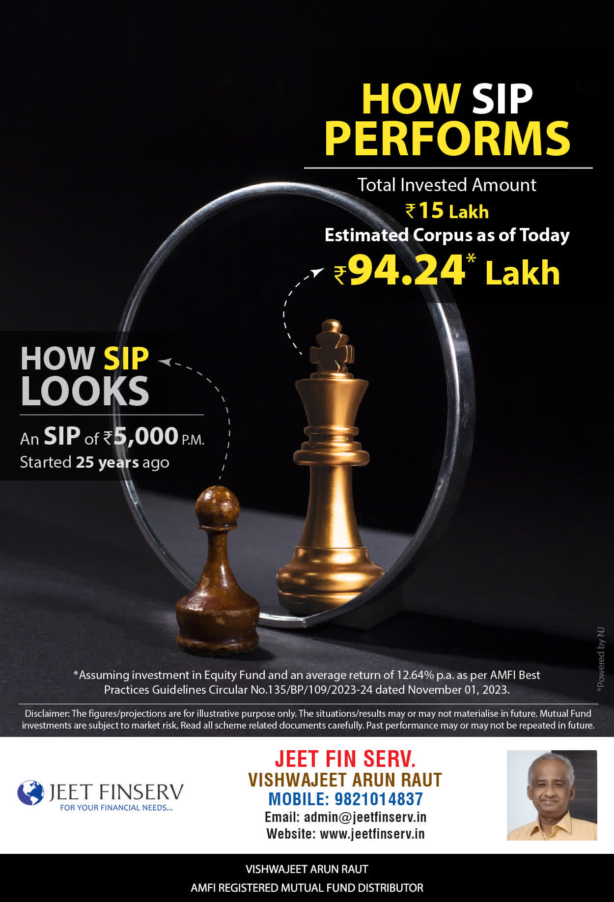 At JEET FIN SERV, our vision is to provide you with the most ideal solutions in wealth management for your overall financial well-being. It is our mission to reach to a maximum number of clients and make a positive, worthwhile impact in their lives and help them realize and achieve their responsibilities and financial goals in life.