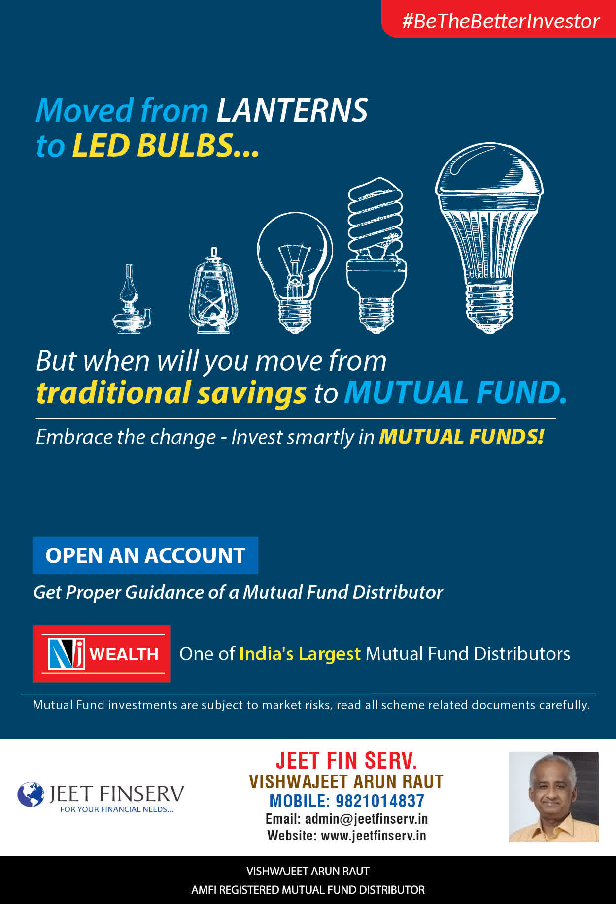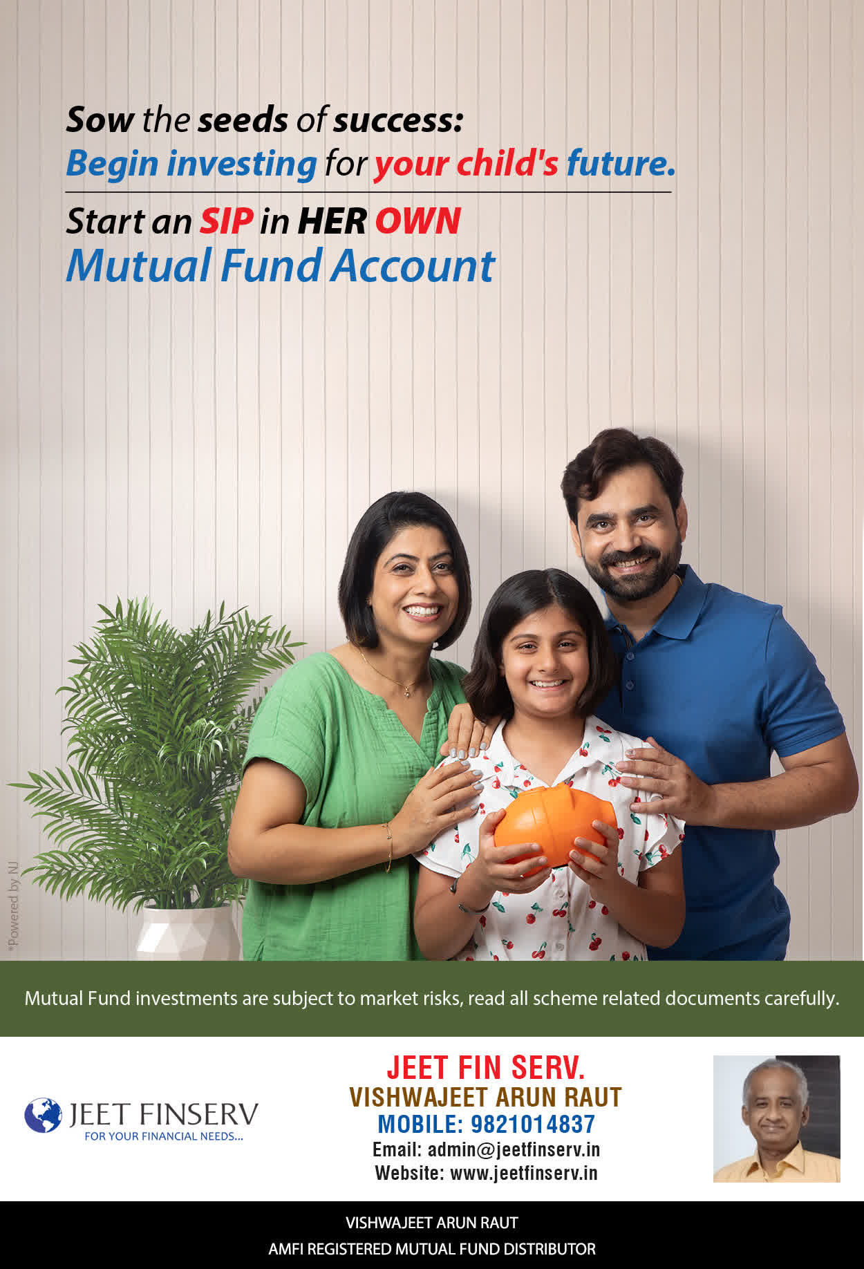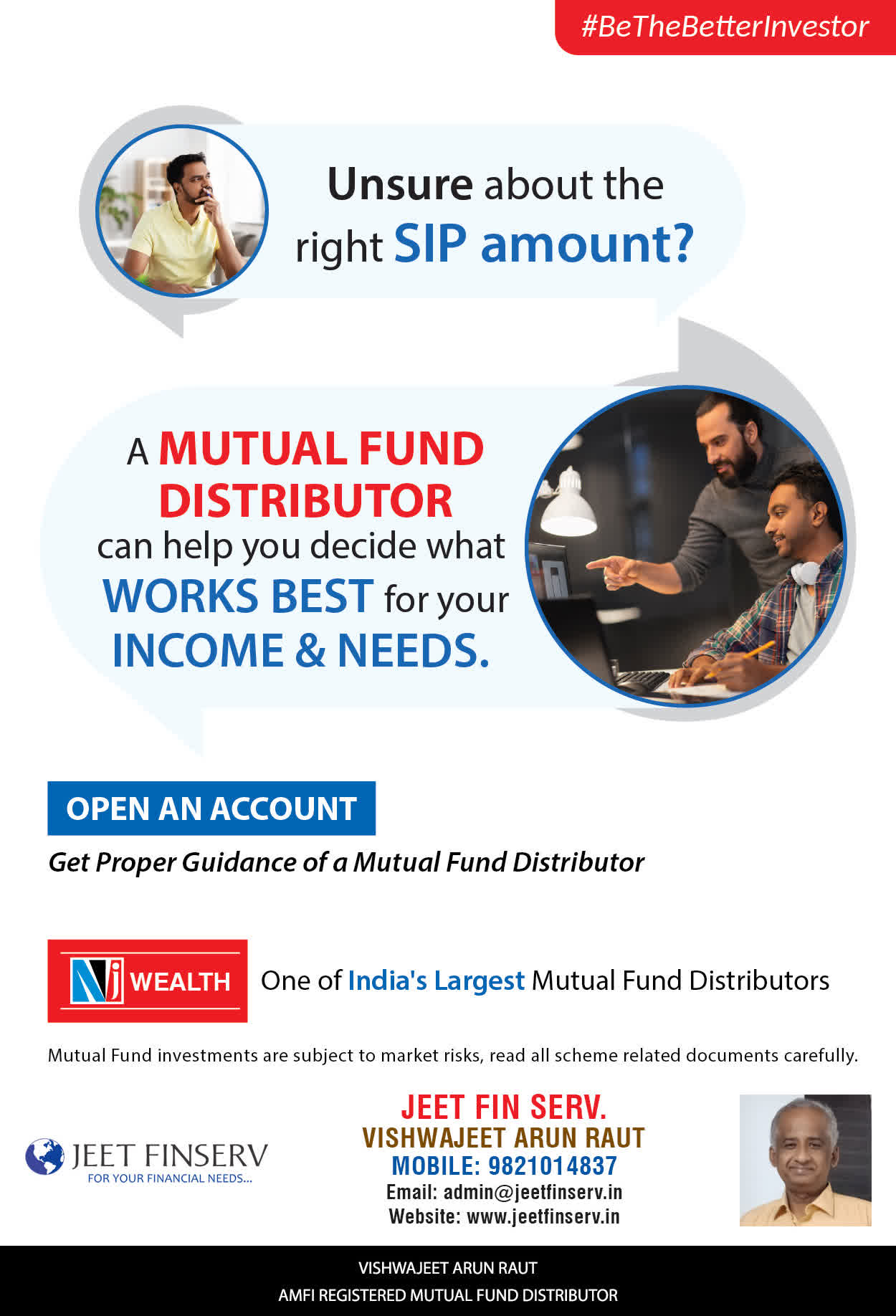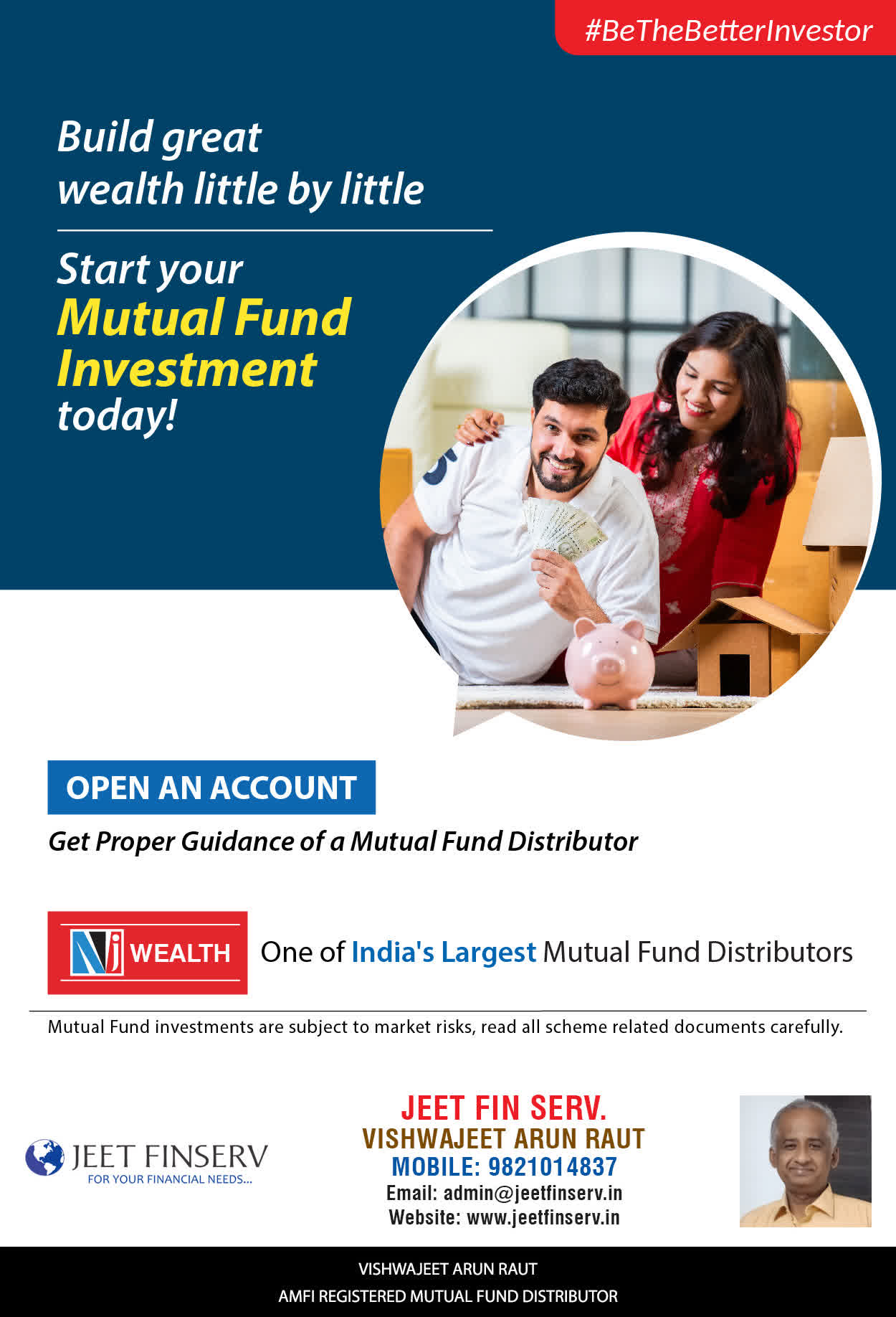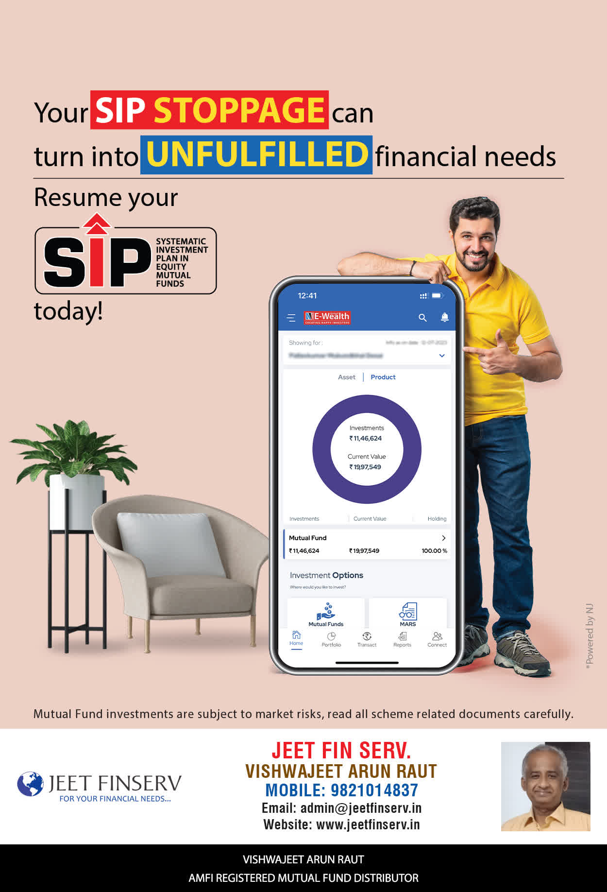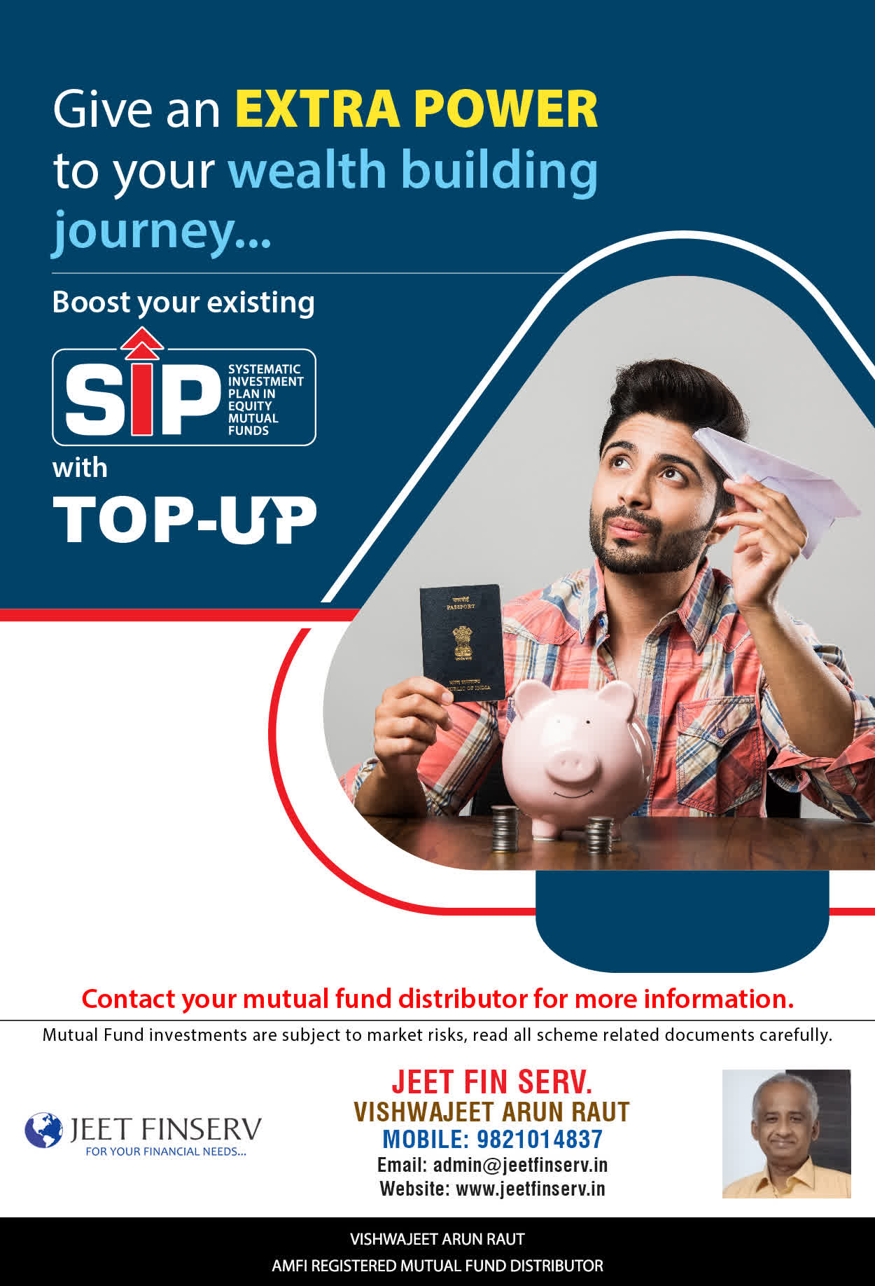 At JEET FIN SERV, our vision is to provide you with the most ideal solutions in wealth management for your overall financial well-being. It is our mission to reach to a maximum number of clients and make a positive, worthwhile impact in their lives and help them realize and achieve their responsibilities and financial goals in life.