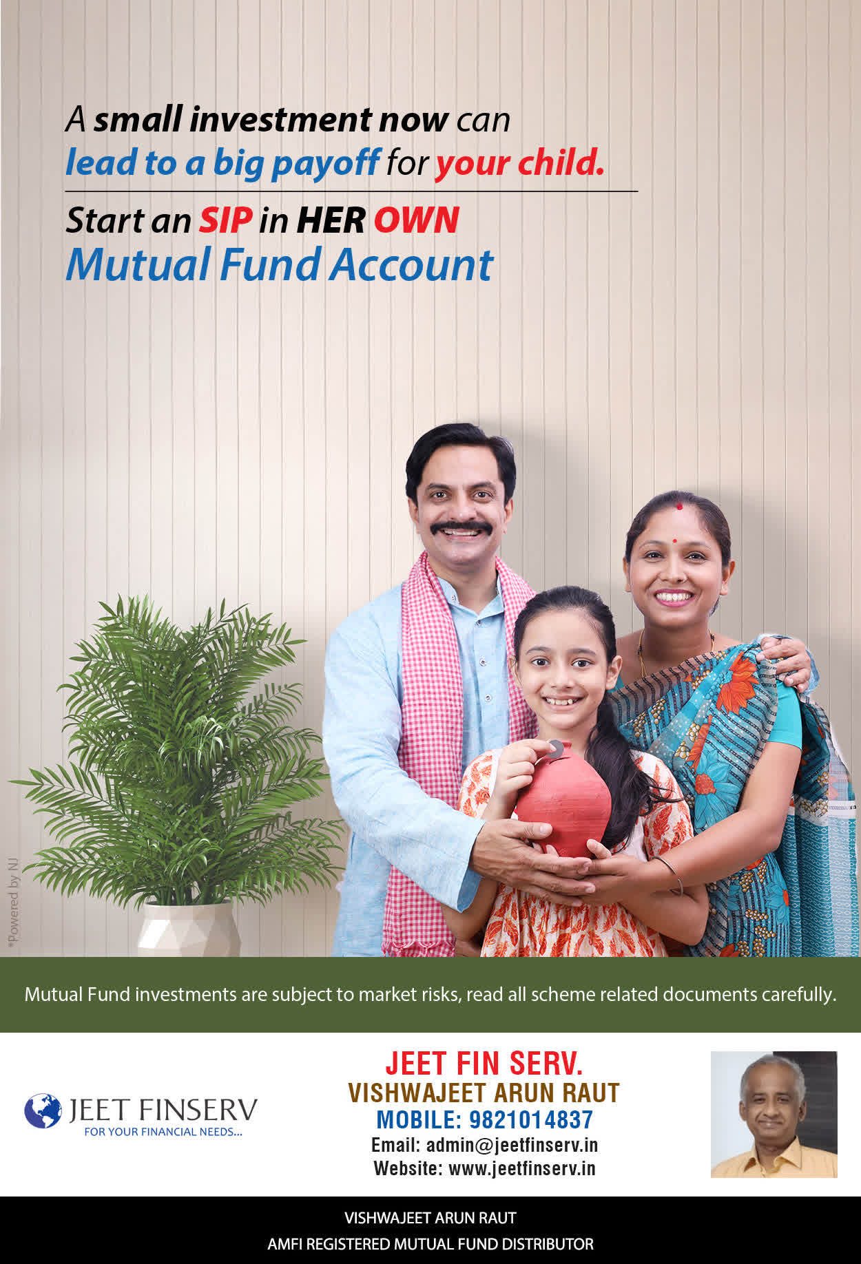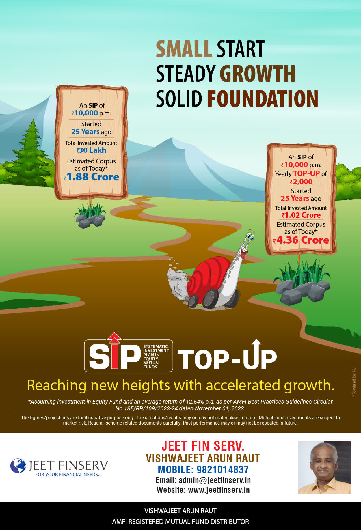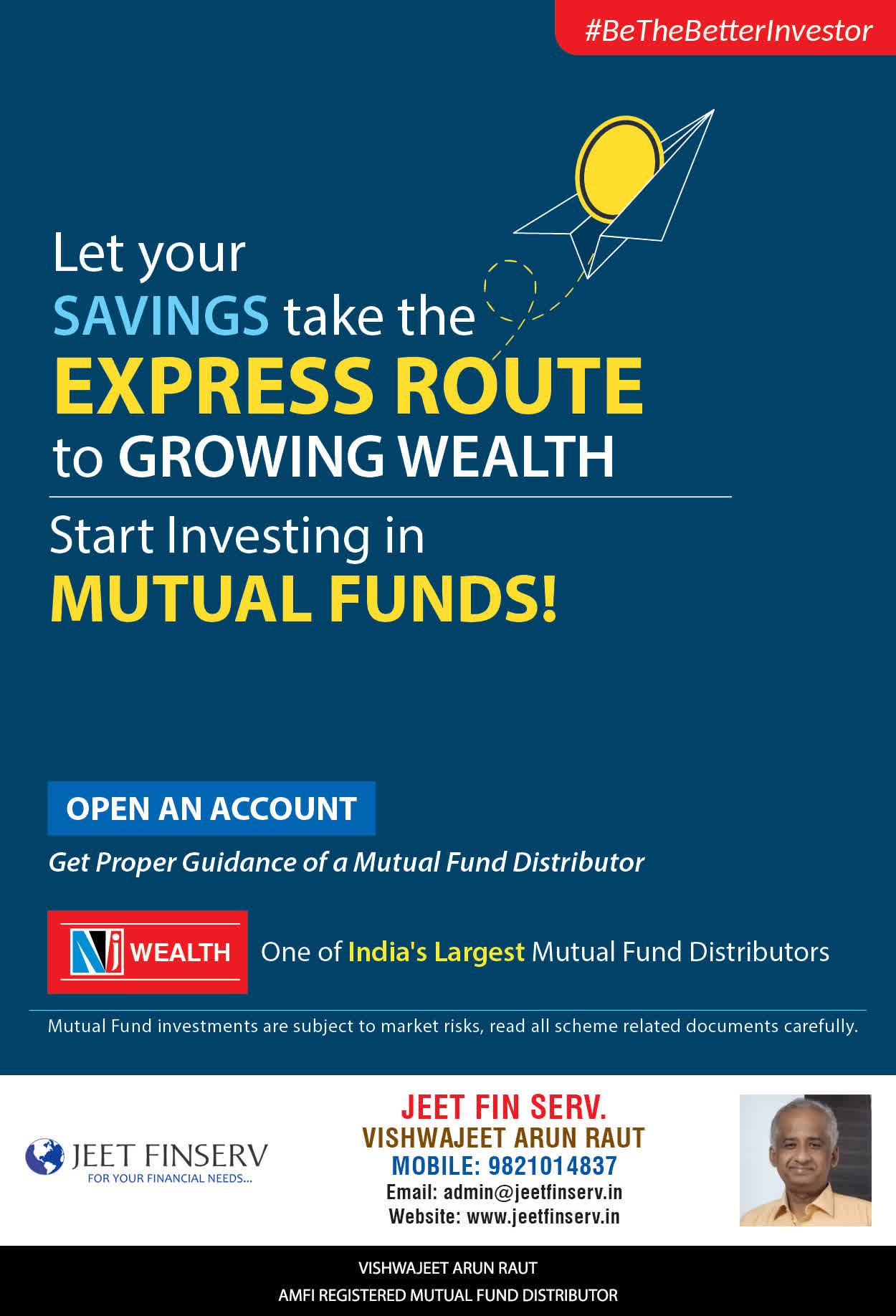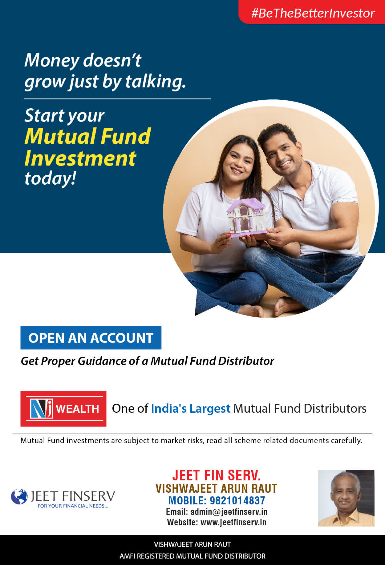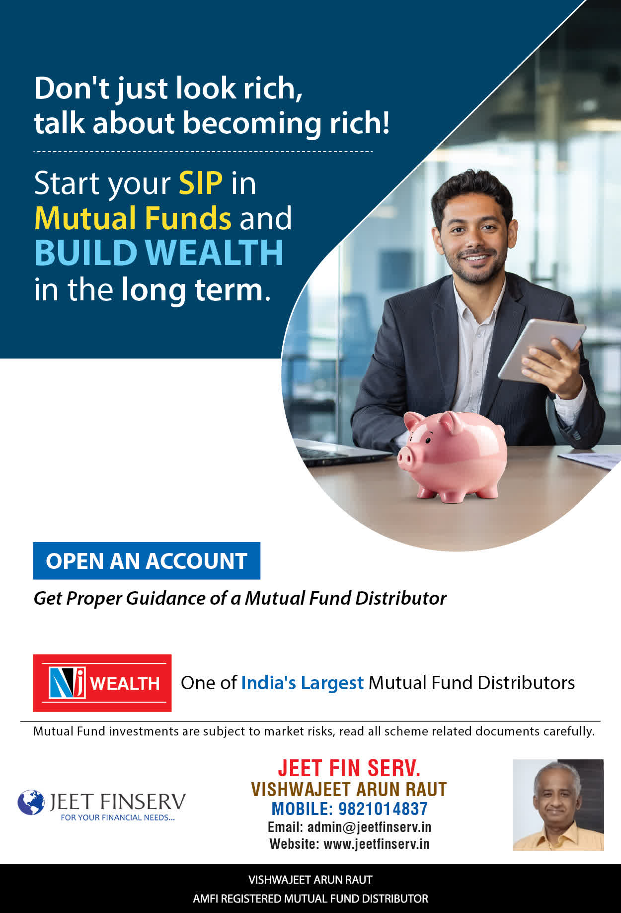 At JEET FIN SERV, our vision is to provide you with the most ideal solutions in wealth management for your overall financial well-being. It is our mission to reach to a maximum number of clients and make a positive, worthwhile impact in their lives and help them realize and achieve their responsibilities and financial goals in life.