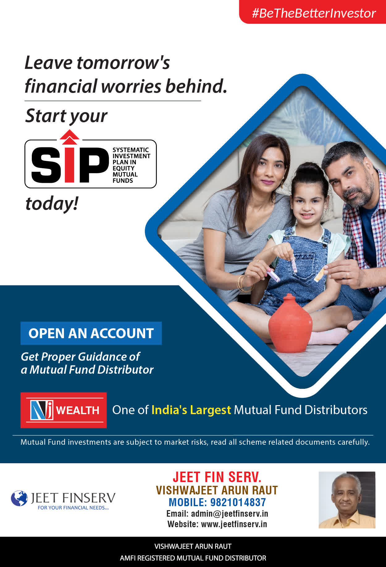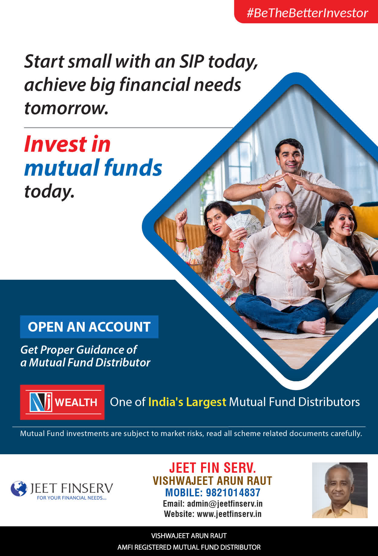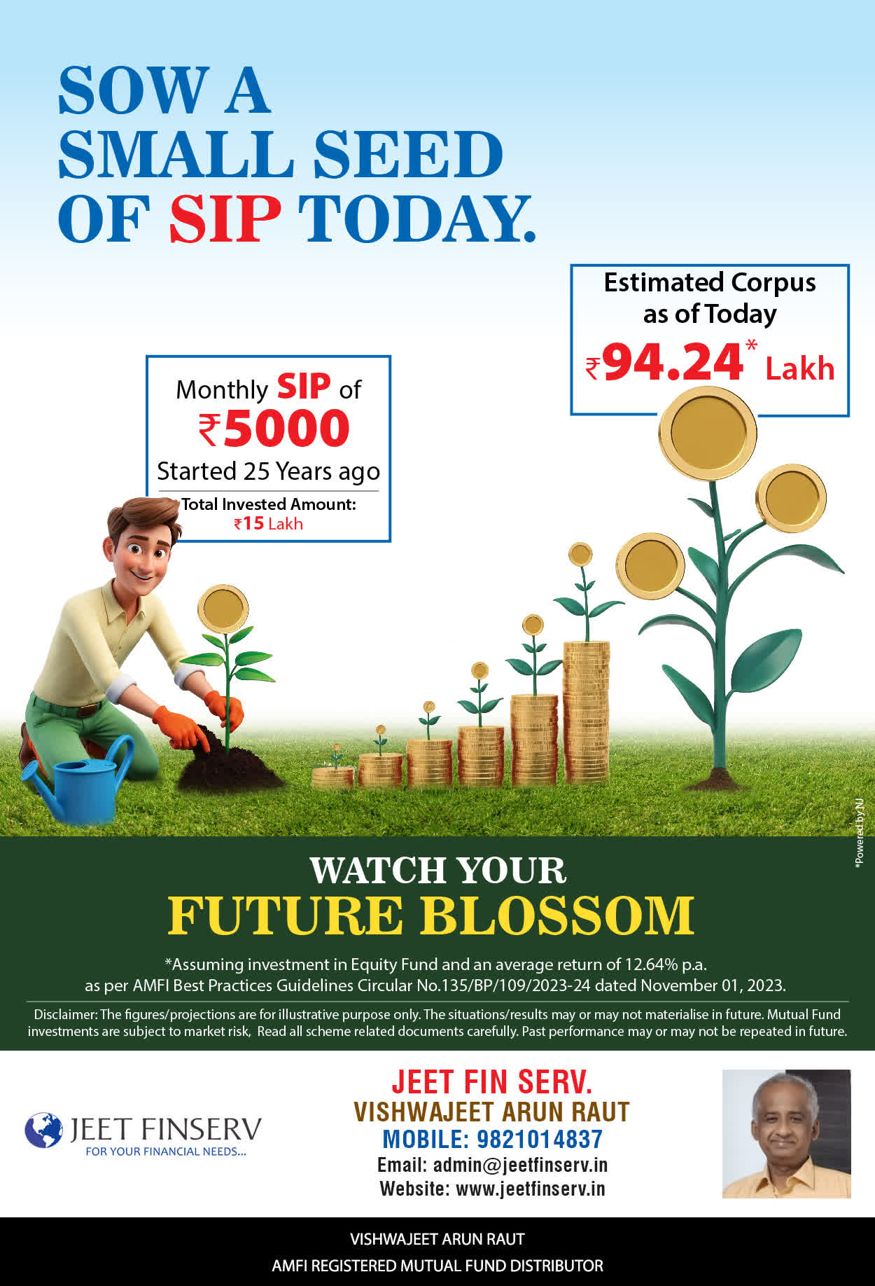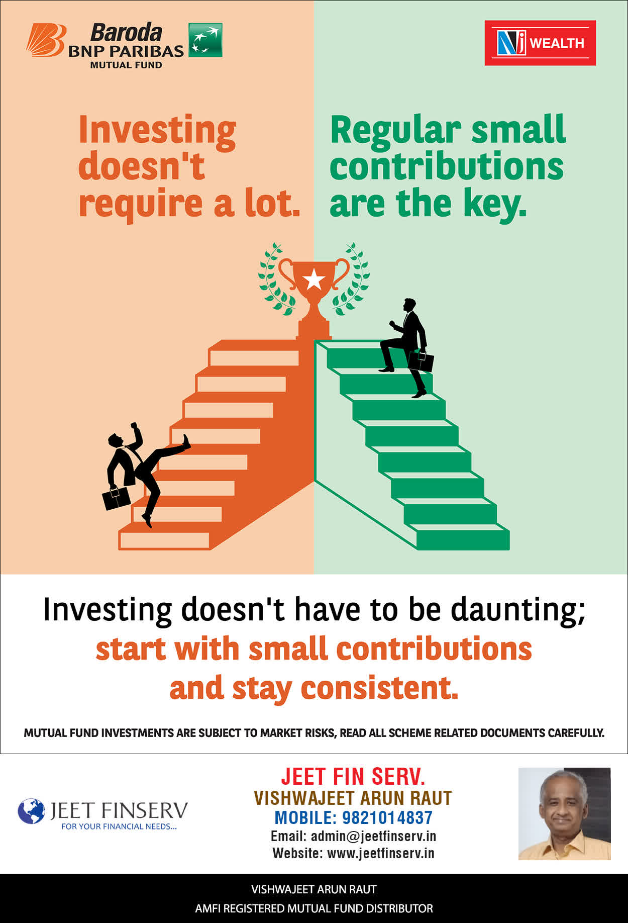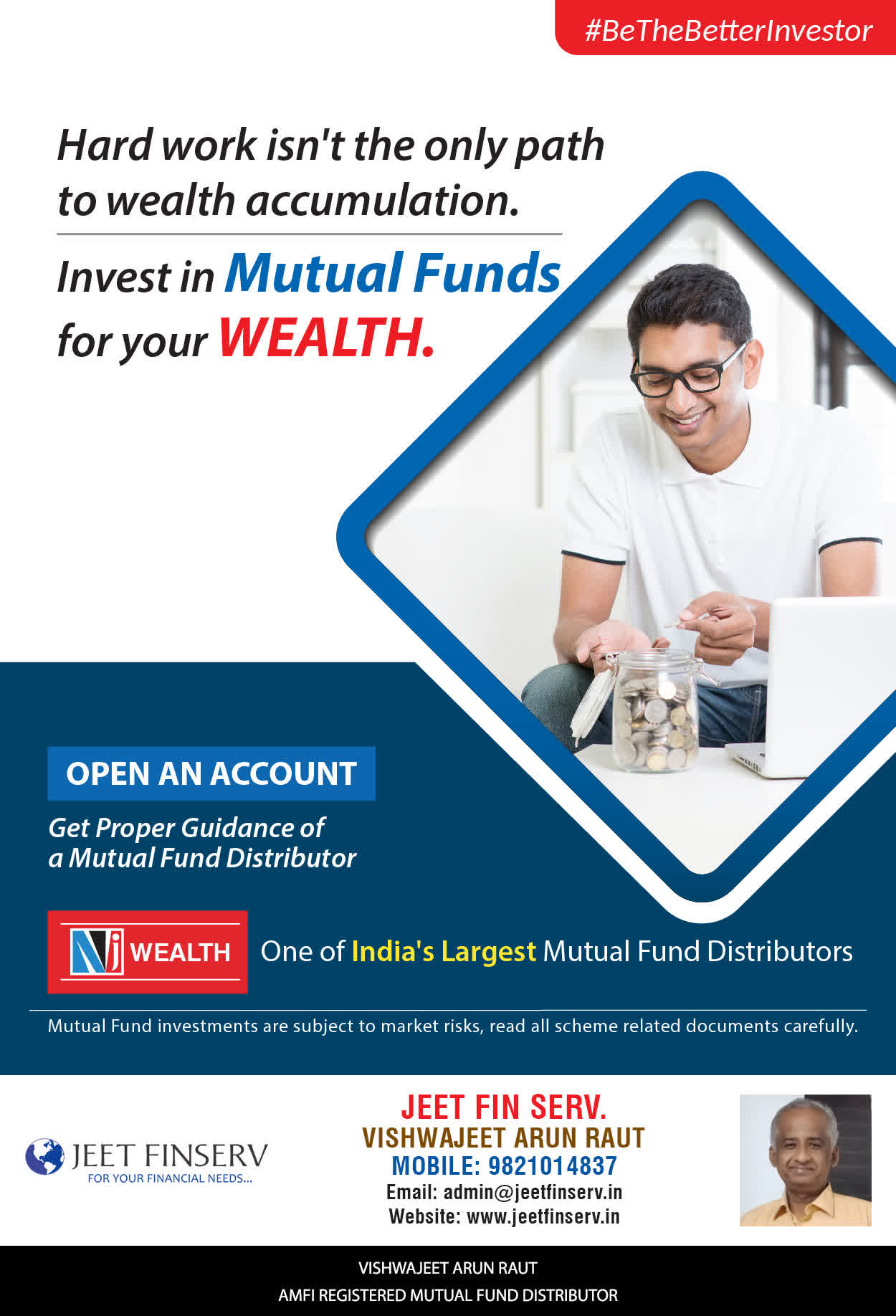 At JEET FIN SERV, our vision is to provide you with the most ideal solutions in wealth management for your overall financial well-being. It is our mission to reach to a maximum number of clients and make a positive, worthwhile impact in their lives and help them realize and achieve their responsibilities and financial goals in life.