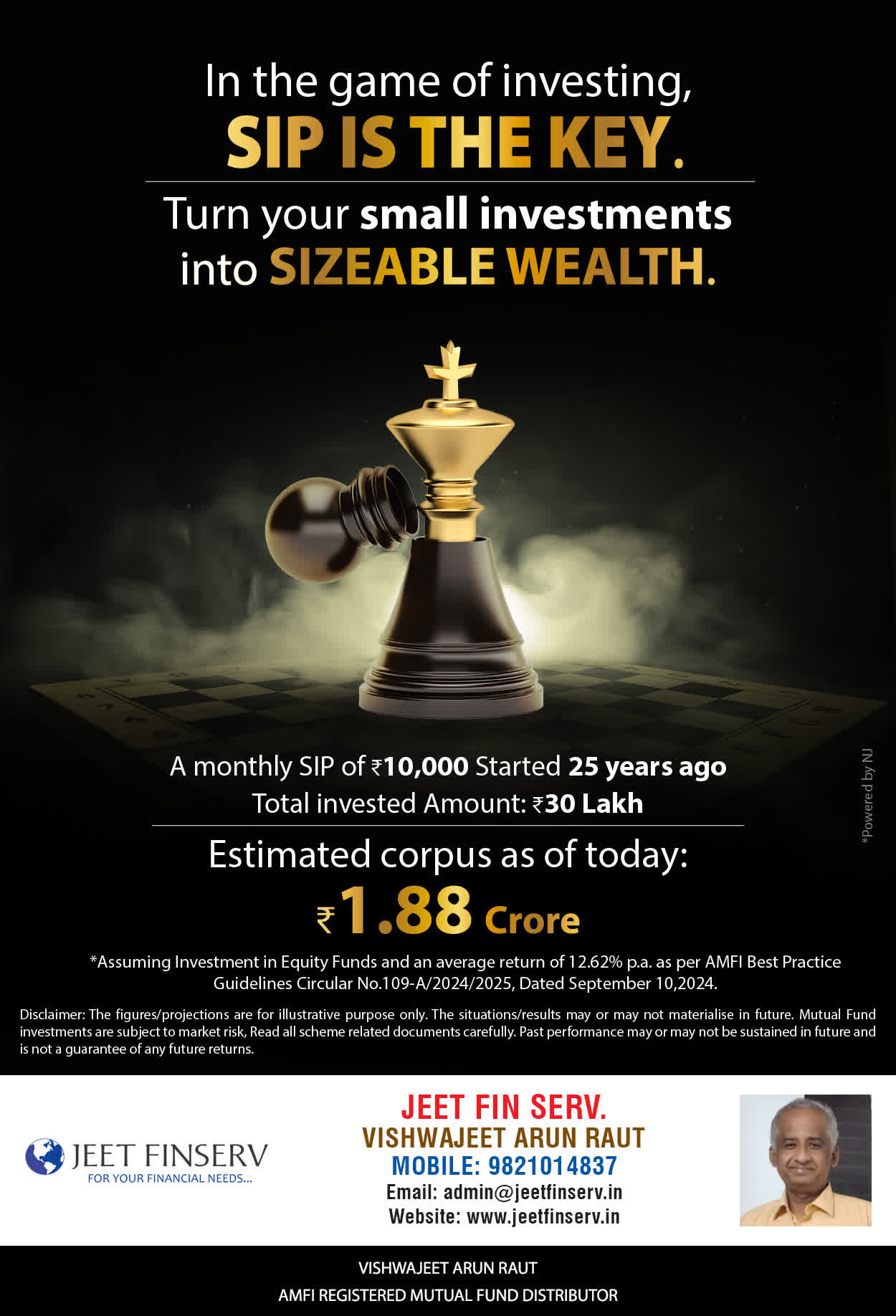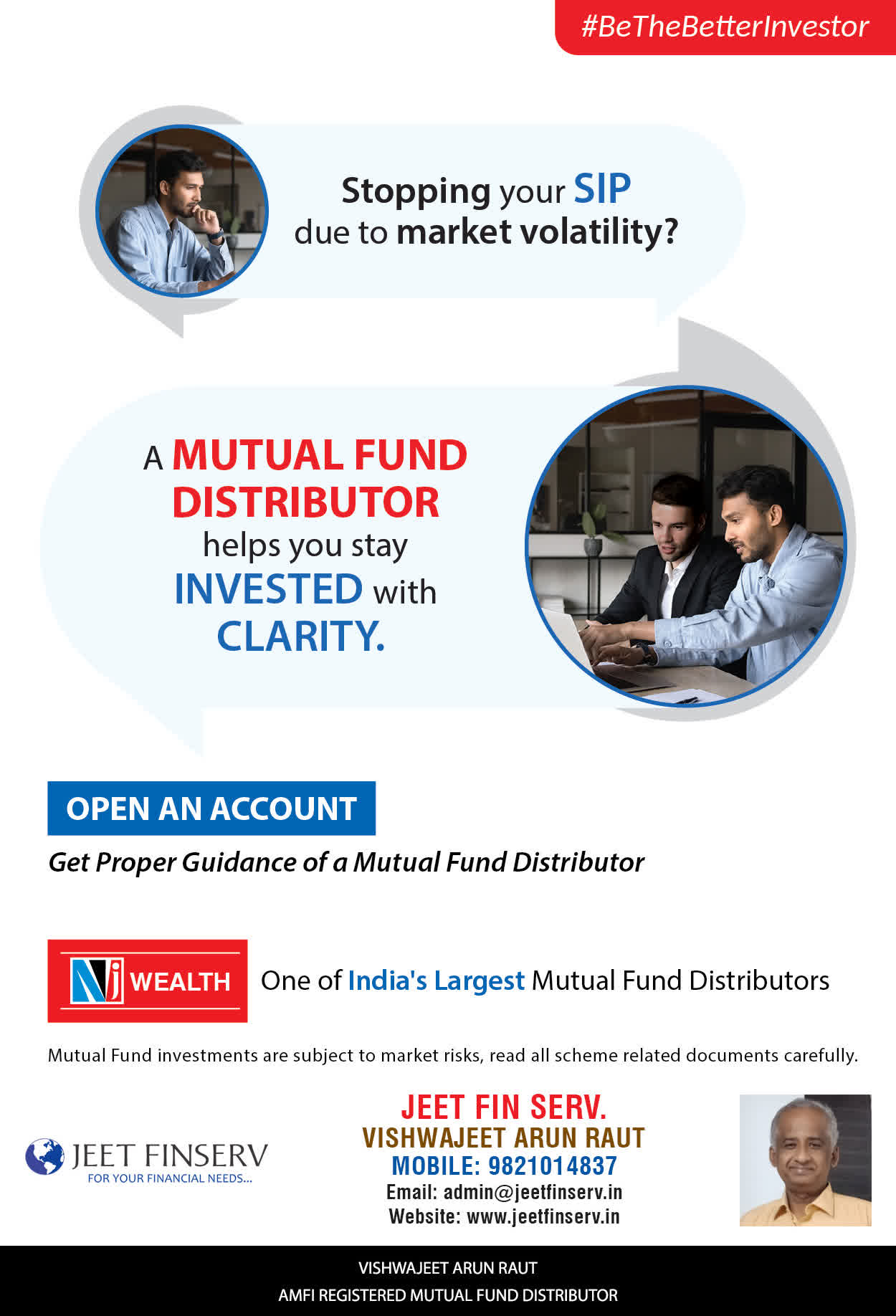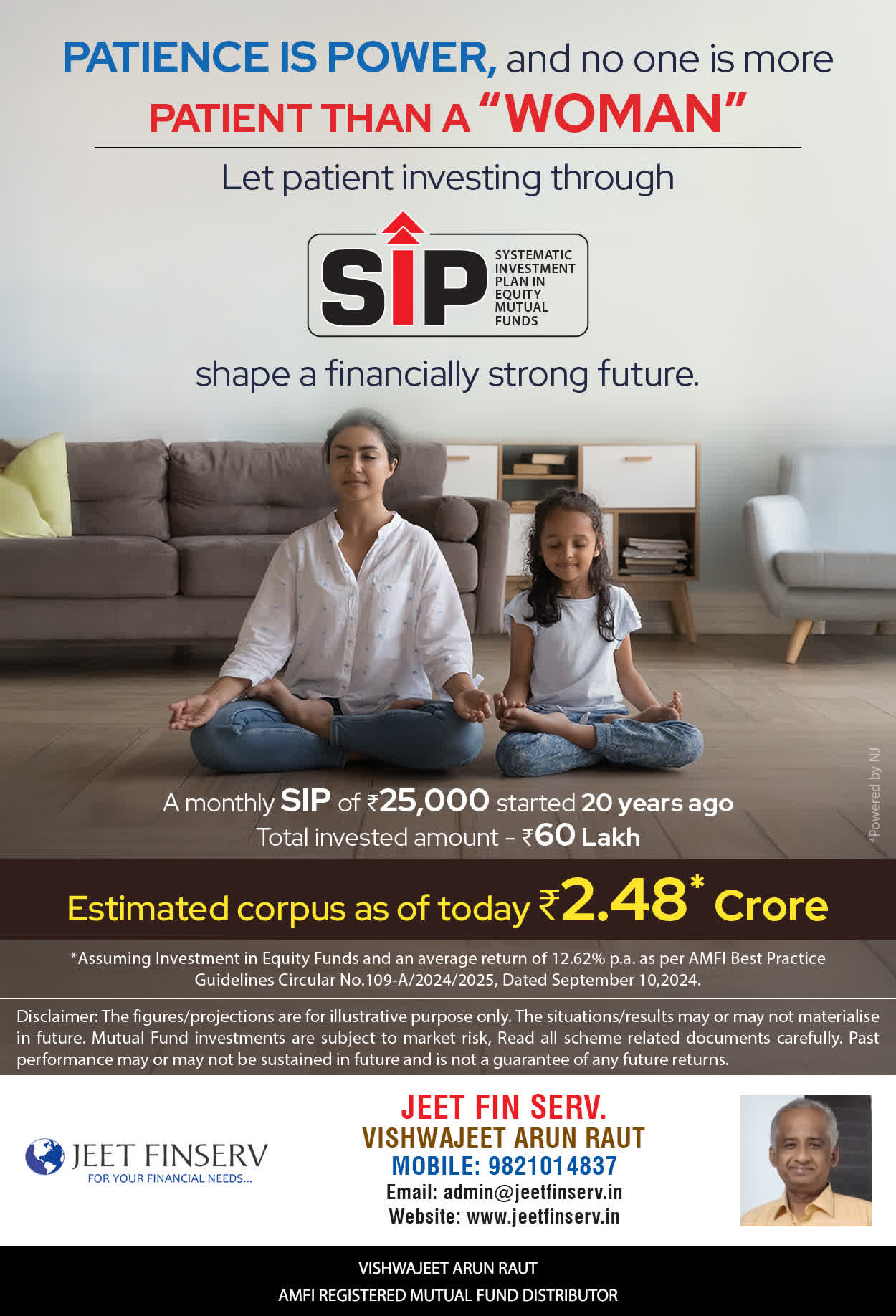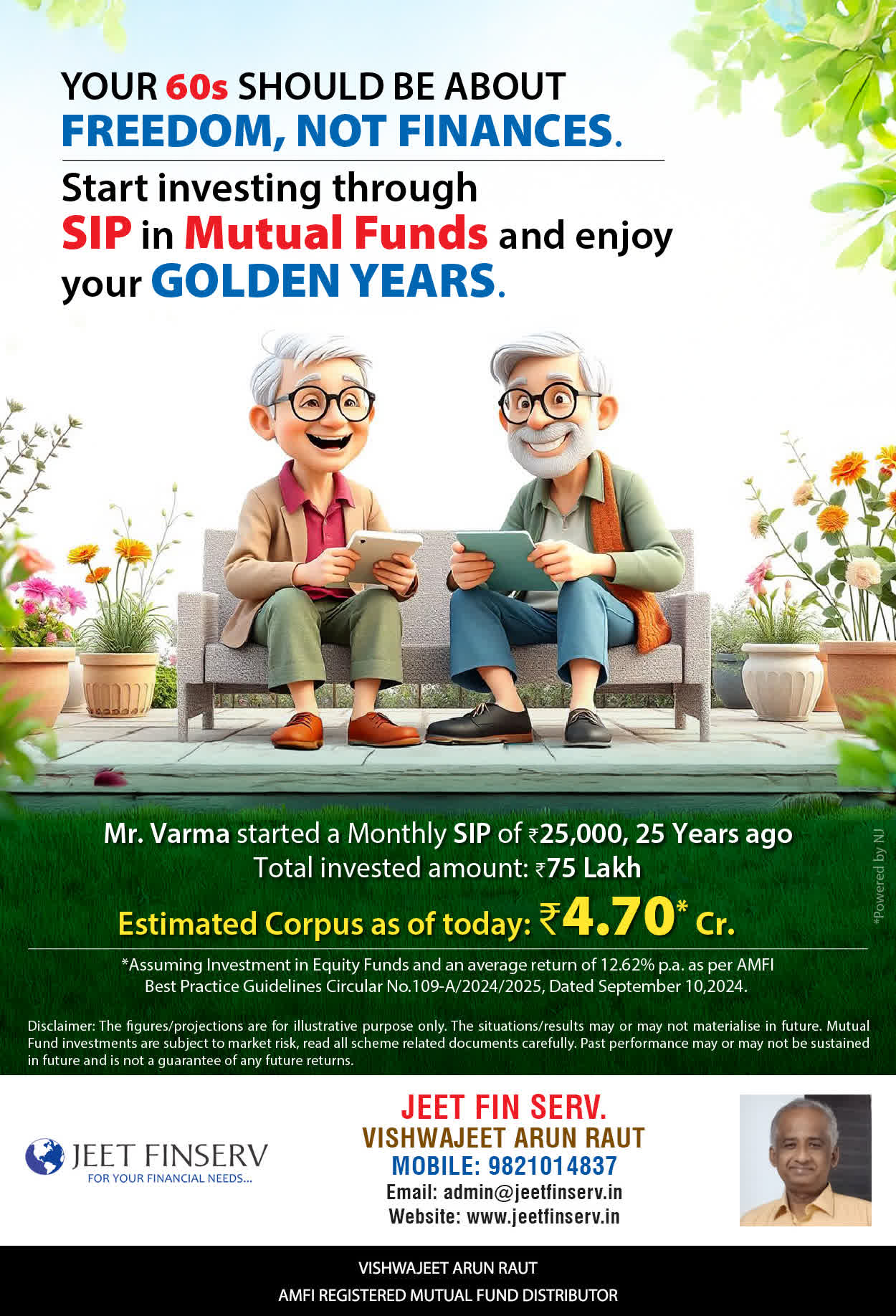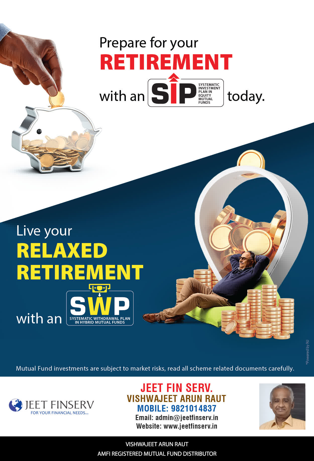 At JEET FIN SERV, our vision is to provide you with the most ideal solutions in wealth management for your overall financial well-being. It is our mission to reach to a maximum number of clients and make a positive, worthwhile impact in their lives and help them realize and achieve their responsibilities and financial goals in life.