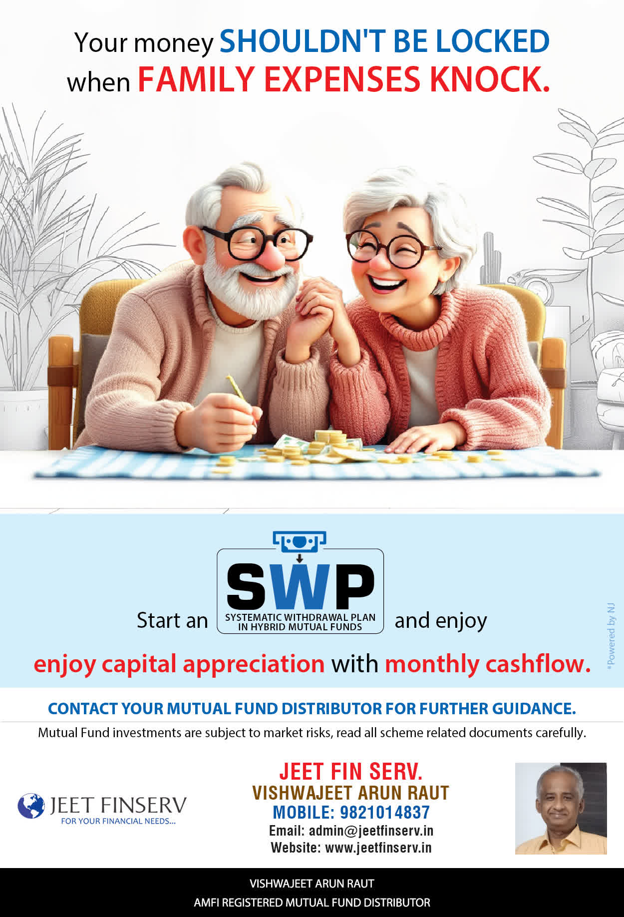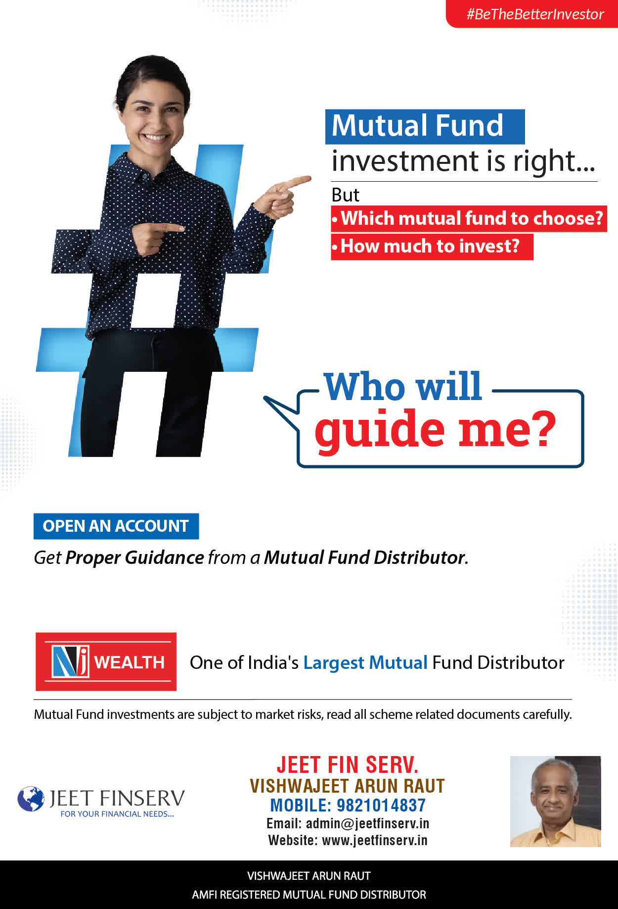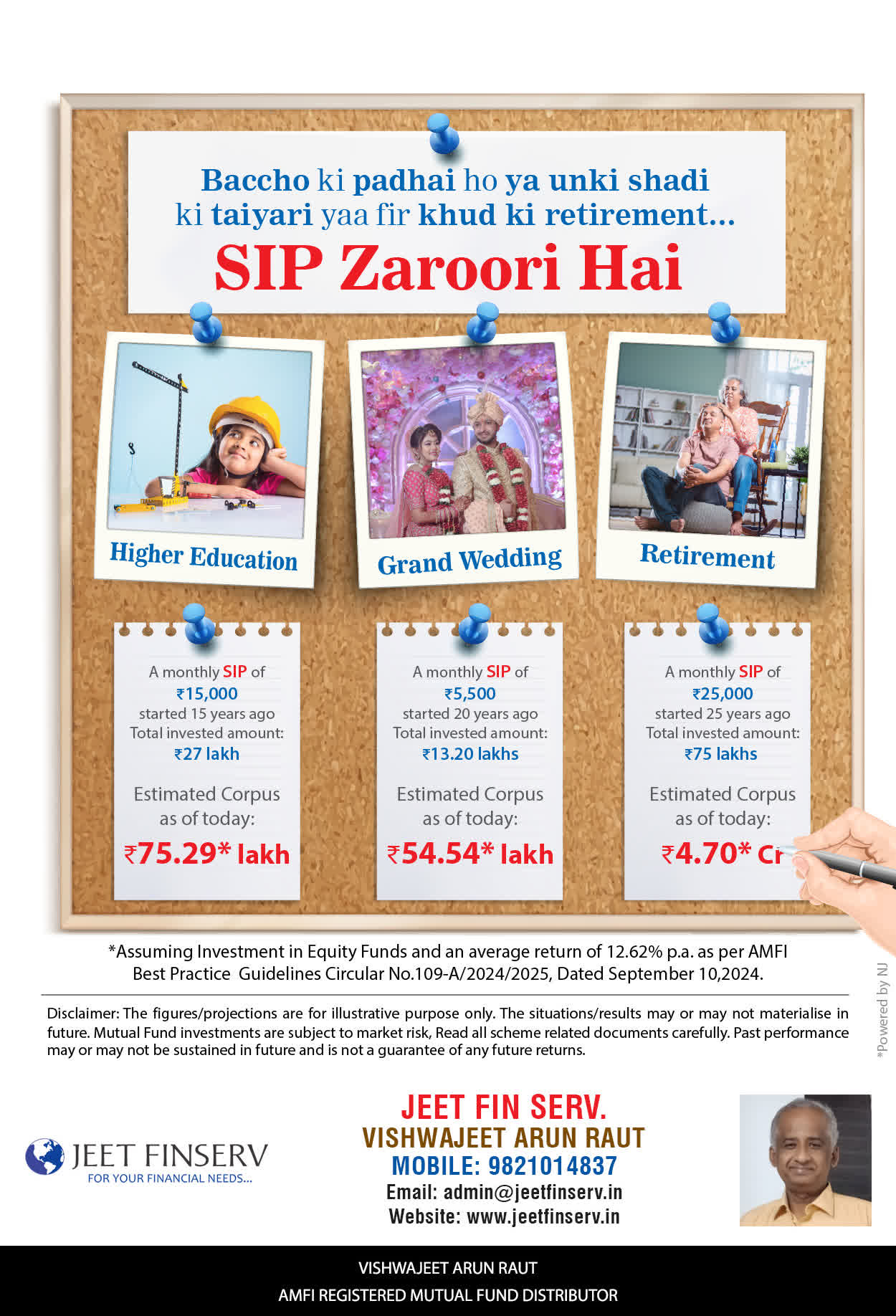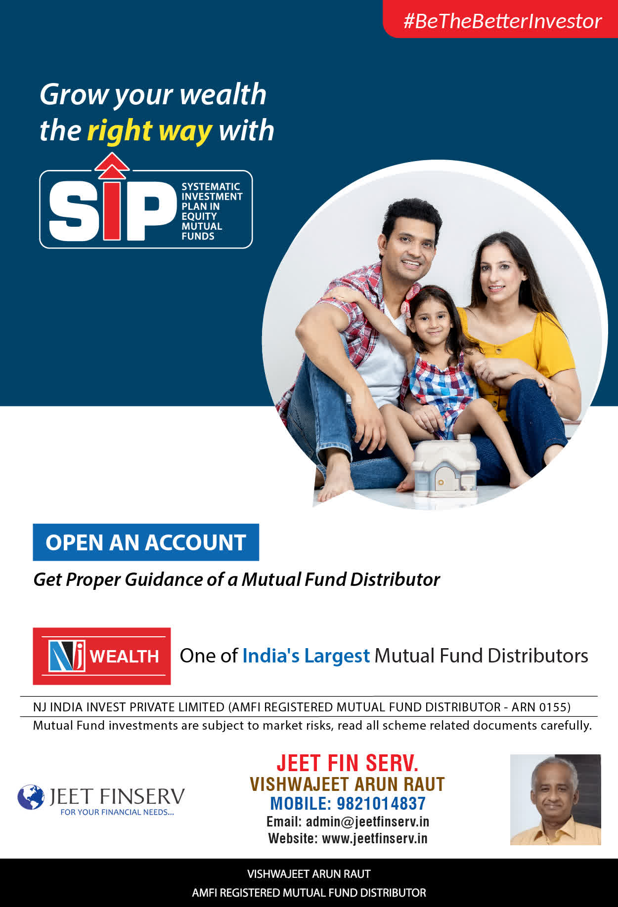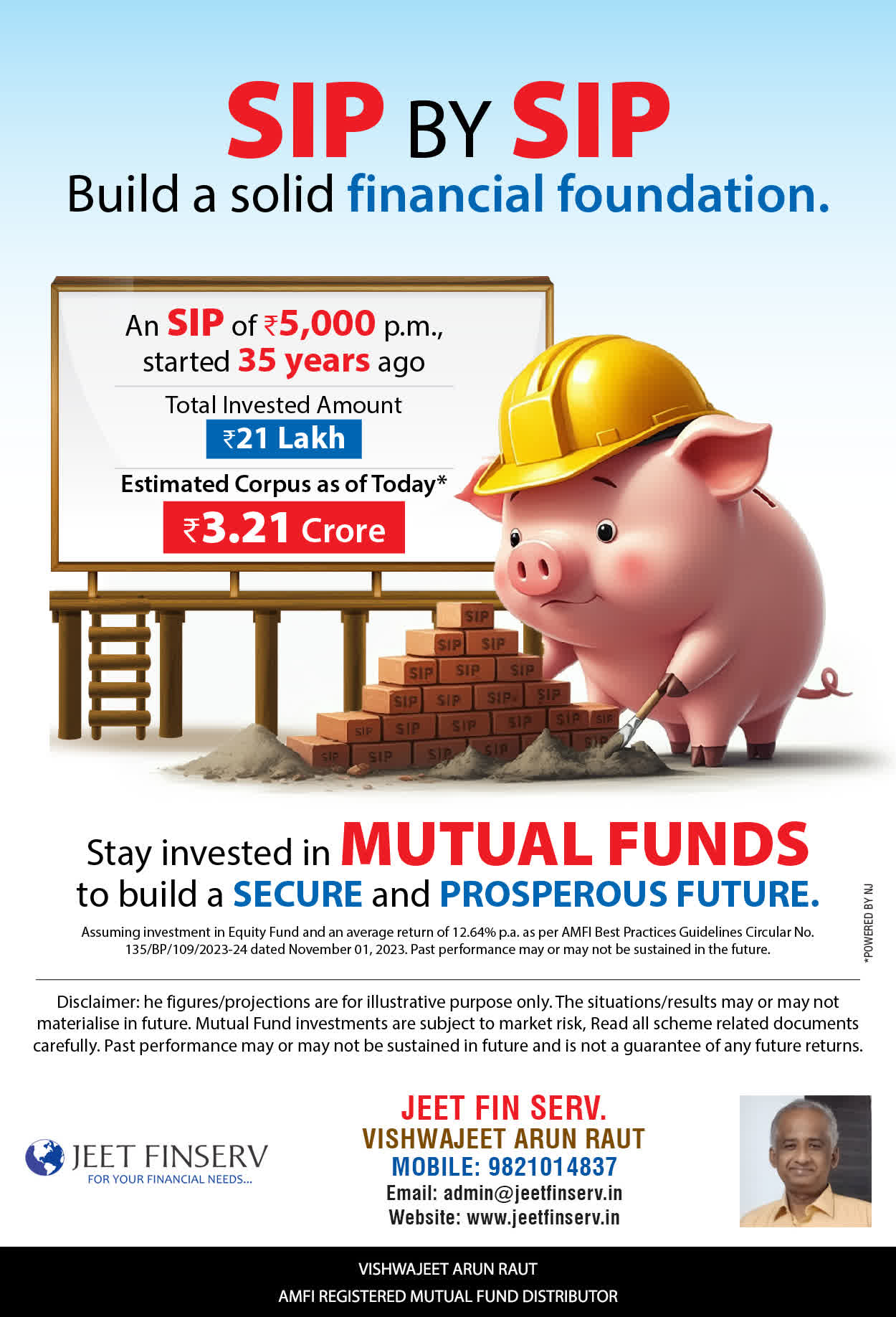 At JEET FIN SERV, our vision is to provide you with the most ideal solutions in wealth management for your overall financial well-being. It is our mission to reach to a maximum number of clients and make a positive, worthwhile impact in their lives and help them realize and achieve their responsibilities and financial goals in life.