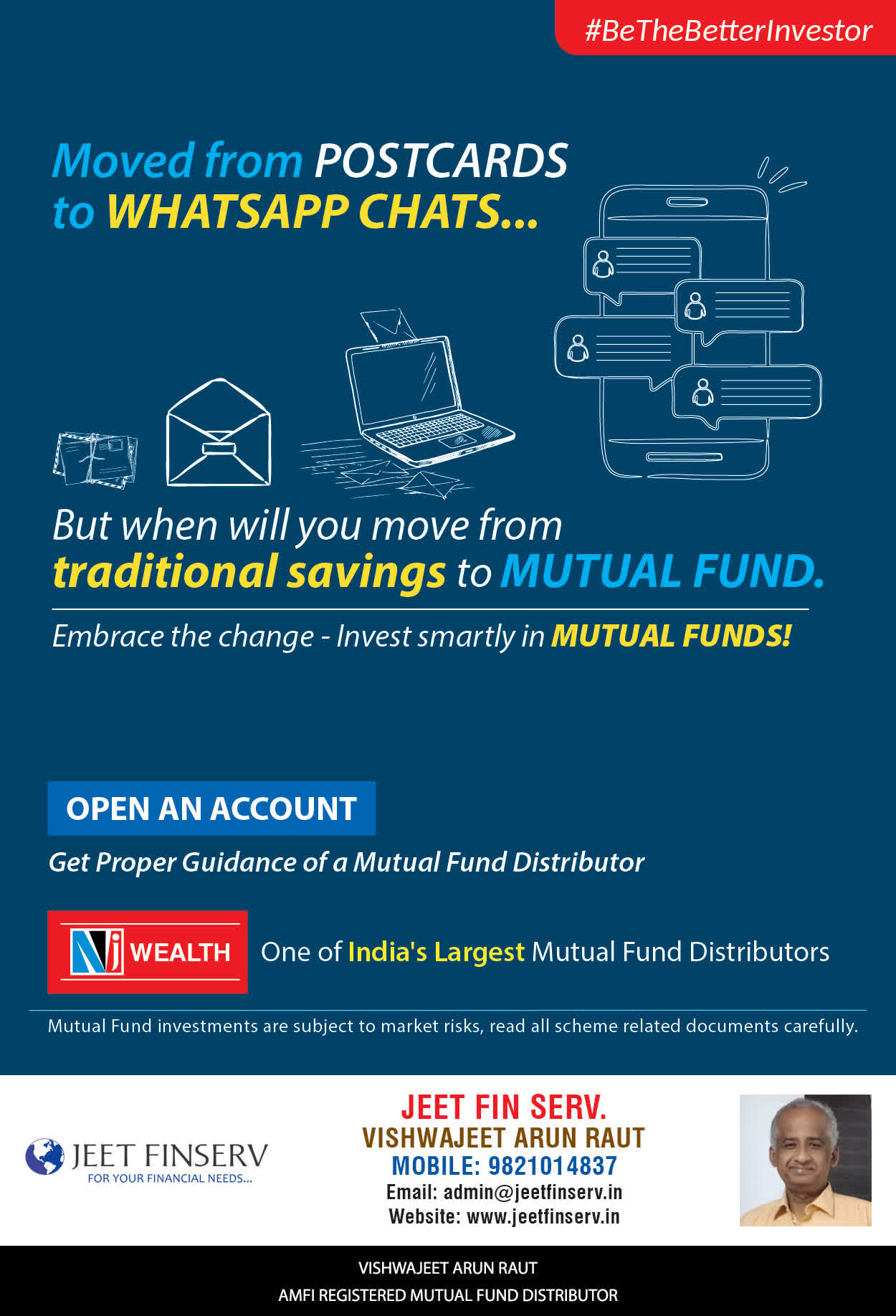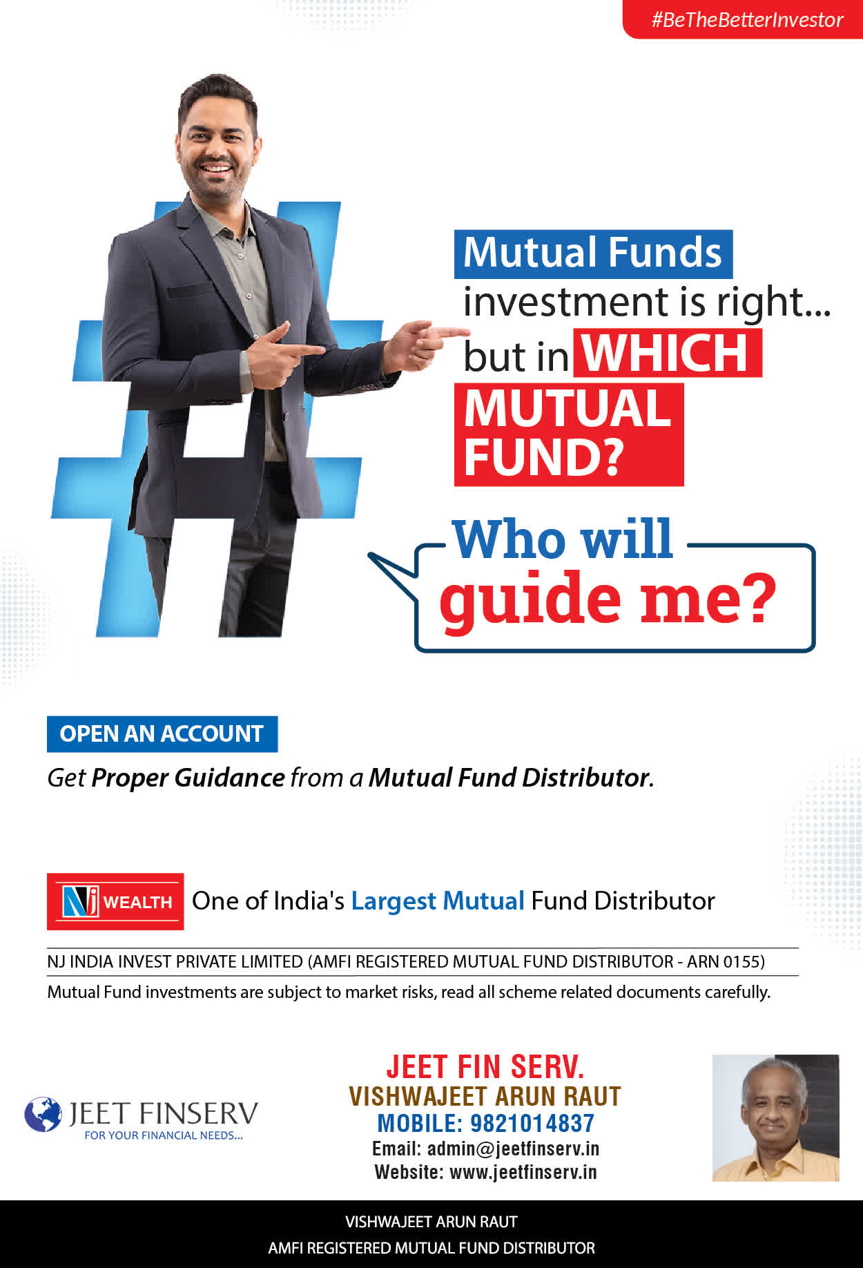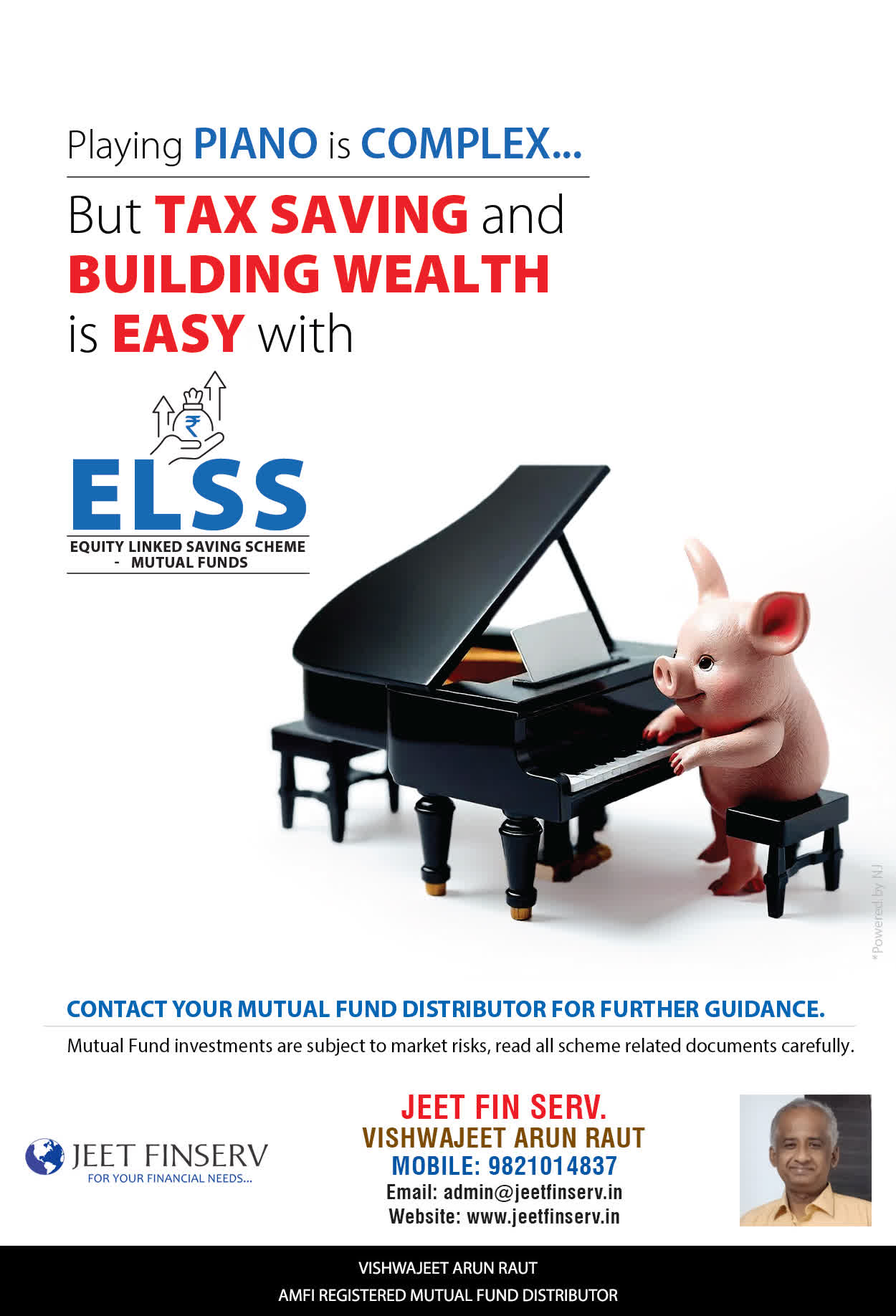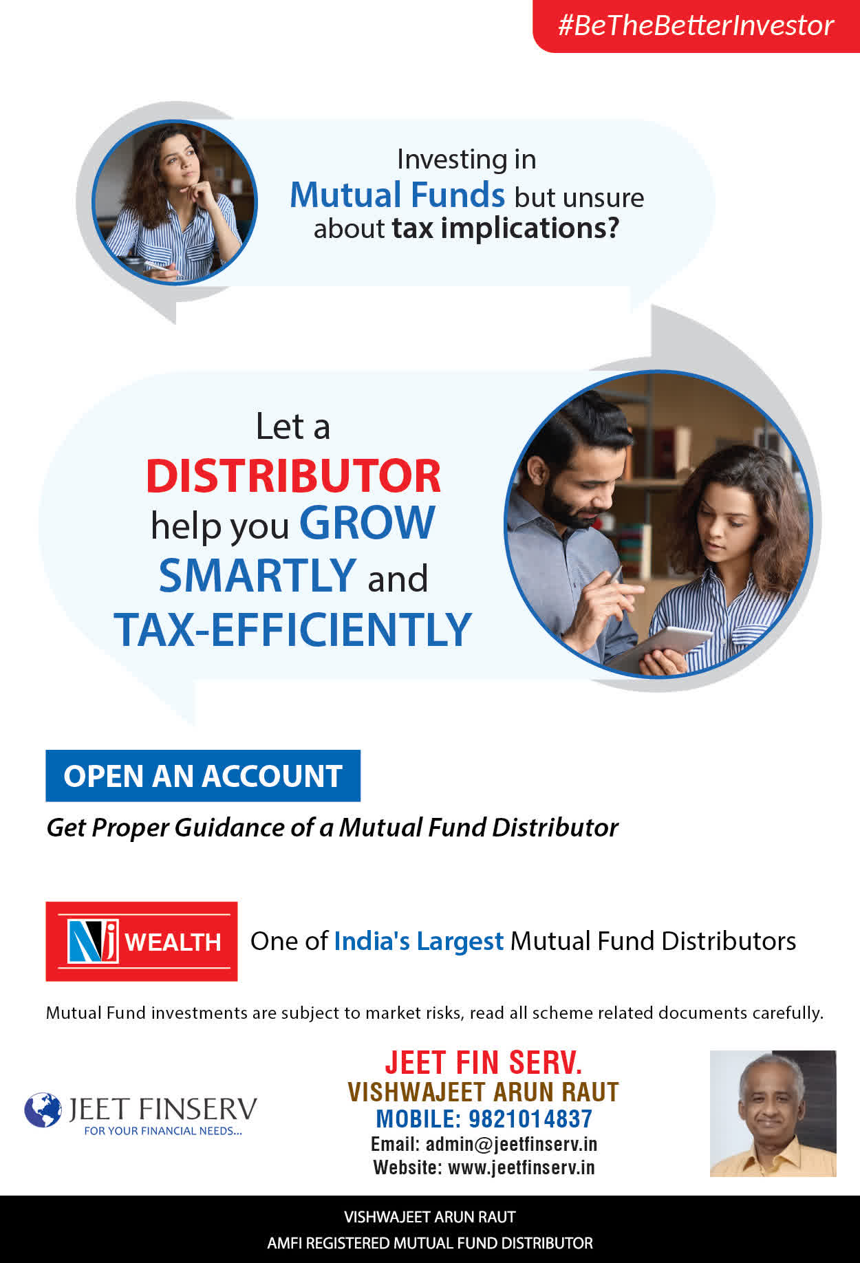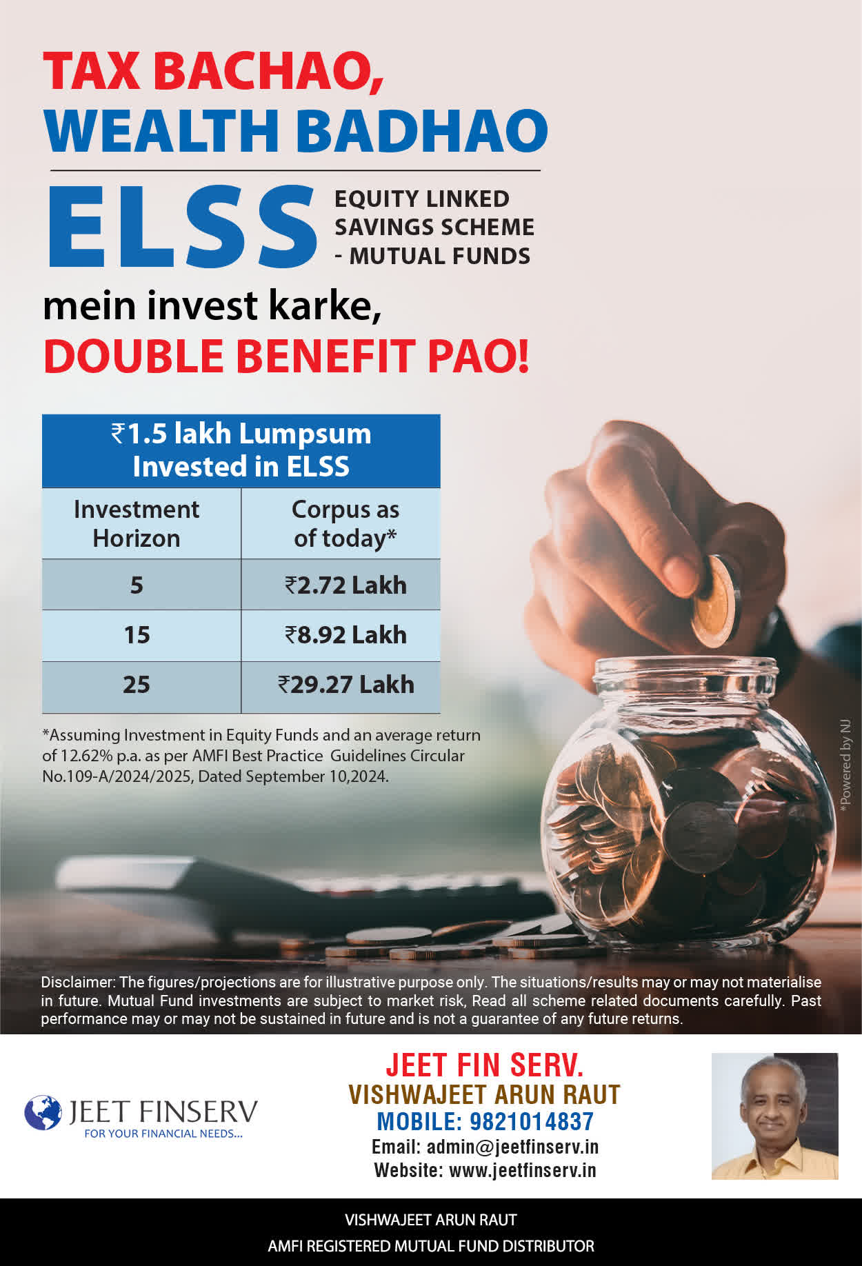 At JEET FIN SERV, our vision is to provide you with the most ideal solutions in wealth management for your overall financial well-being. It is our mission to reach to a maximum number of clients and make a positive, worthwhile impact in their lives and help them realize and achieve their responsibilities and financial goals in life.