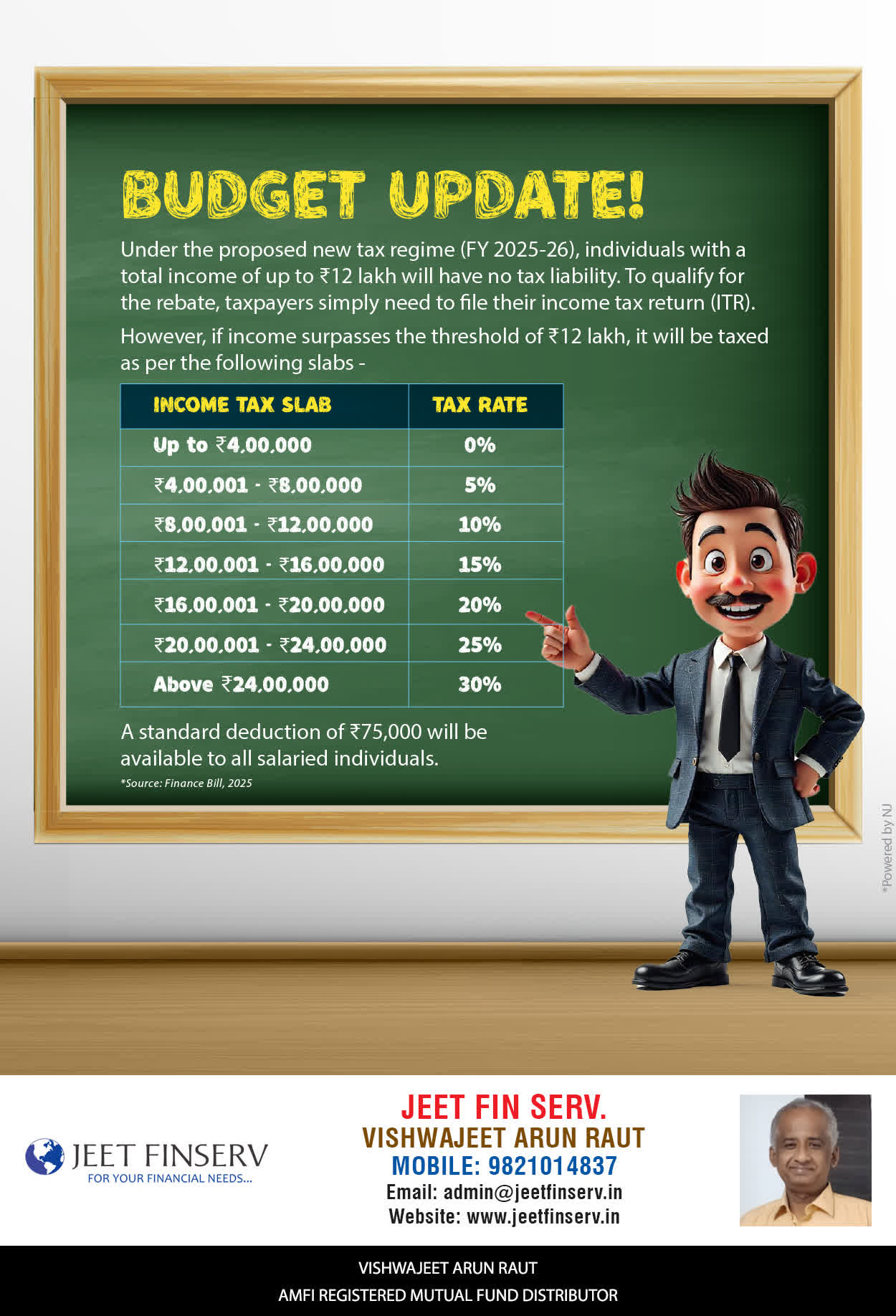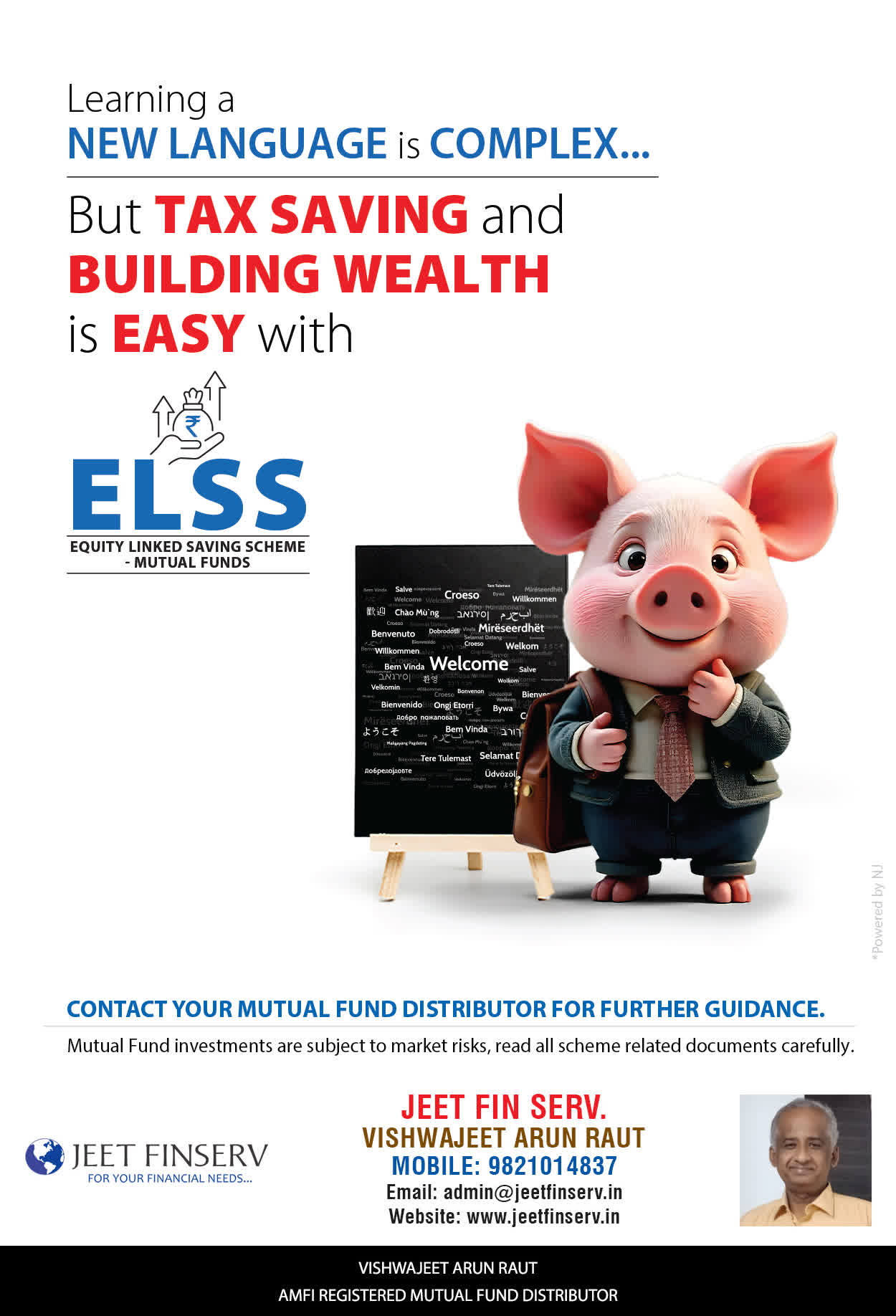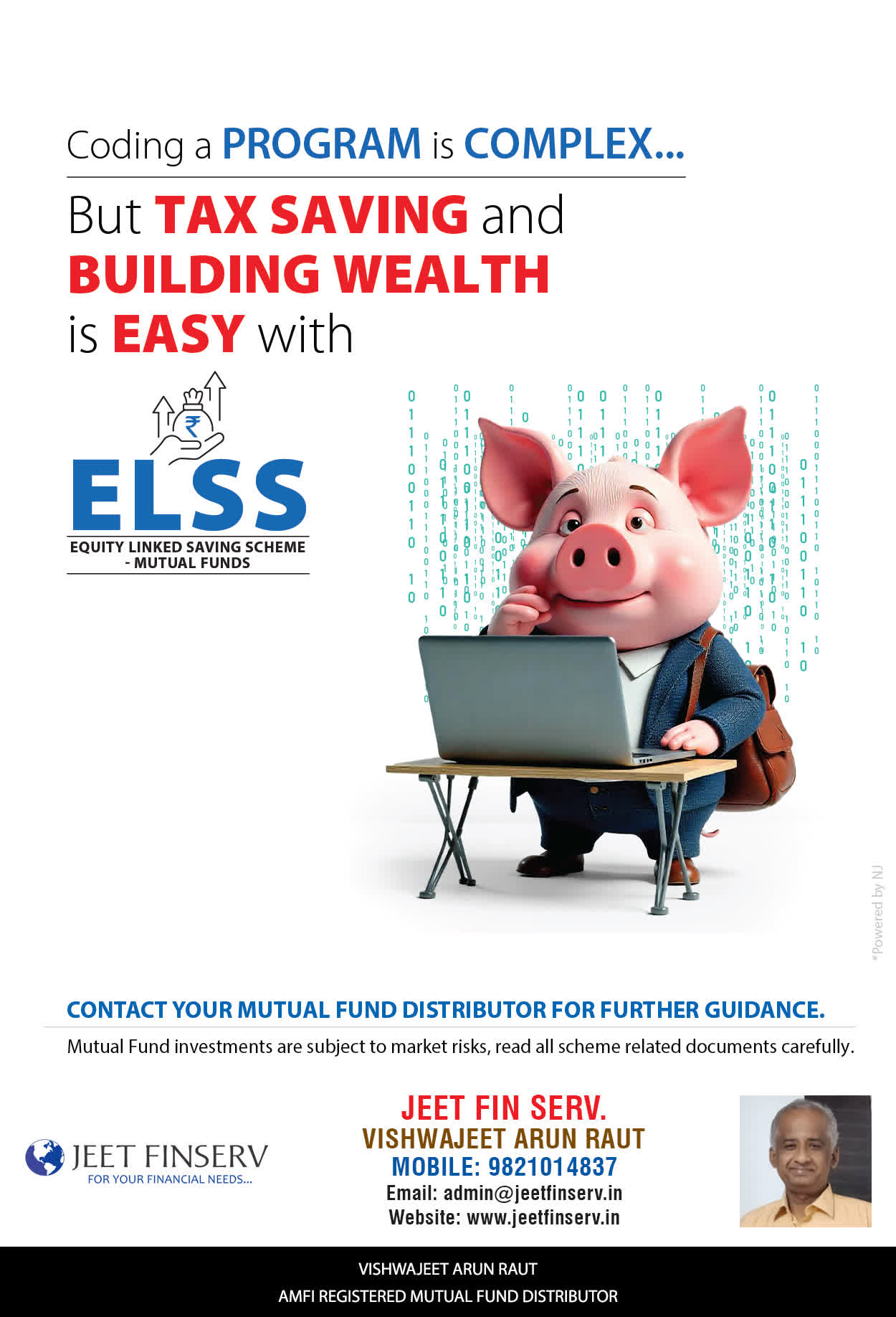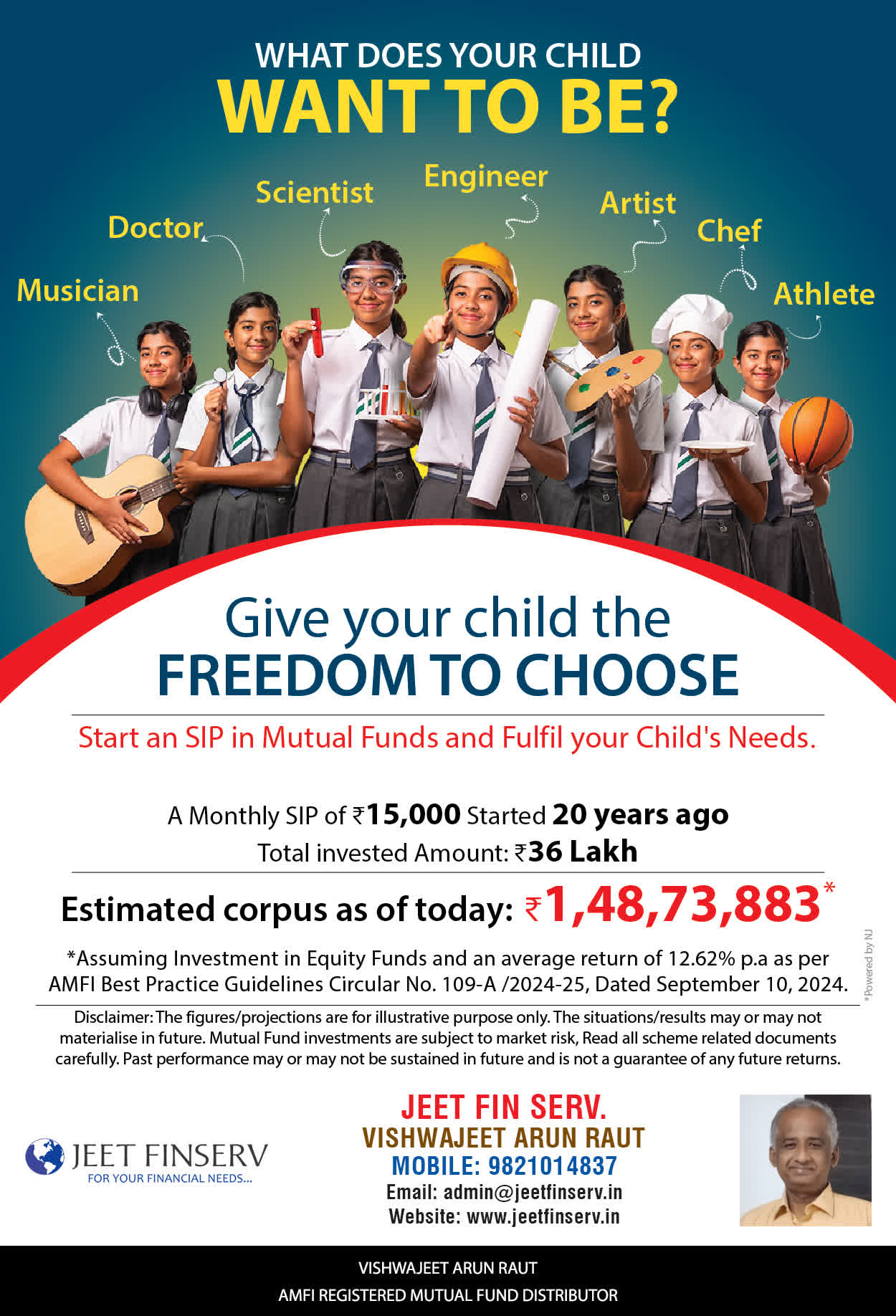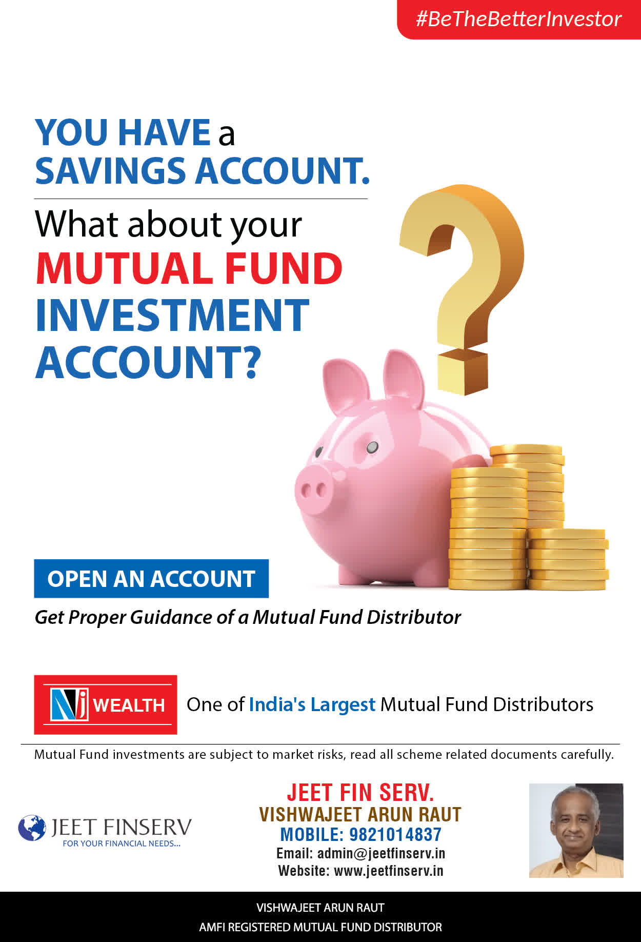 At JEET FIN SERV, our vision is to provide you with the most ideal solutions in wealth management for your overall financial well-being. It is our mission to reach to a maximum number of clients and make a positive, worthwhile impact in their lives and help them realize and achieve their responsibilities and financial goals in life.